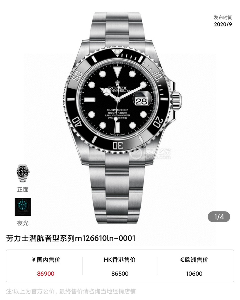 劳力士潜航者型 黑水鬼 M126610LN-0001自动机械男性