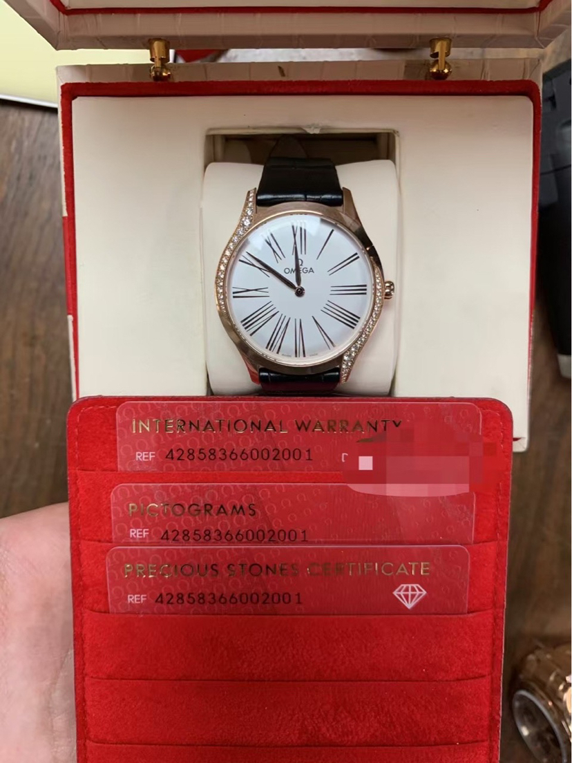 Omega欧米茄碟飞428.58.36.60.02.001 女士石英腕表18K玫瑰金外圈原镶钻 表径36毫米 新款碟飞 完美成色全套 89700元 二手好价🉐️~