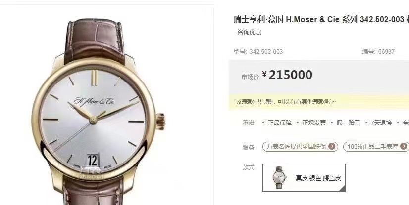 瑞士亨利·慕时 H.Moser & Cie 系列 342.502-003 玫瑰金机械男表 表径:40.8mm 现货好价~