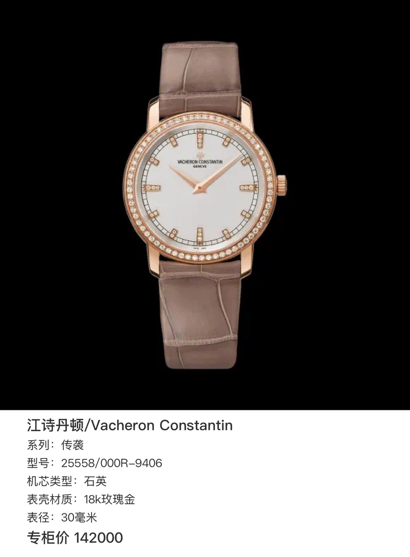 单表 江诗丹顿传袭系列25558 女士腕表 石英机芯 18k玫瑰金材质 热门30毫米表径 原镶钻 专柜价142000现货好价