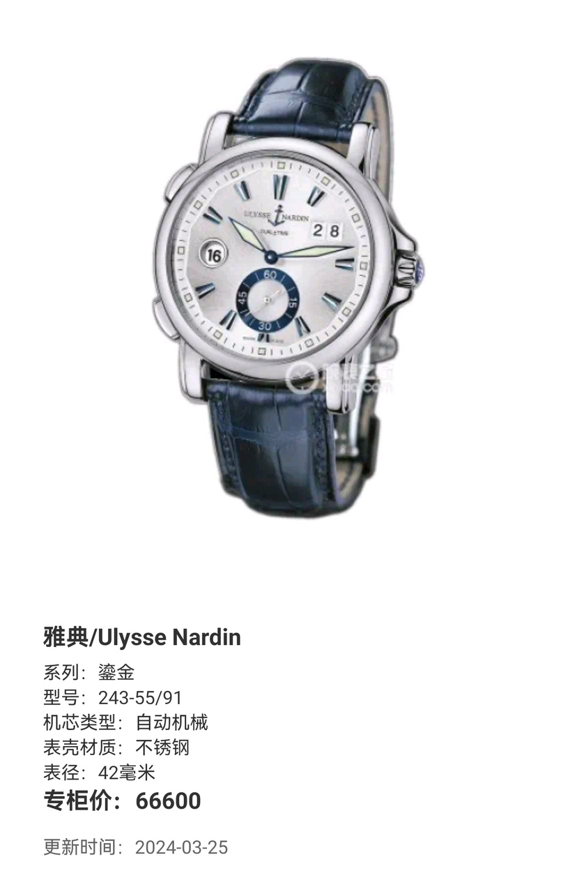 单表 雅典/Ulysse Nardin 鎏金 243-55/91 自动机械 不锈钢 42毫米 专柜价66600 现货好价🉐~