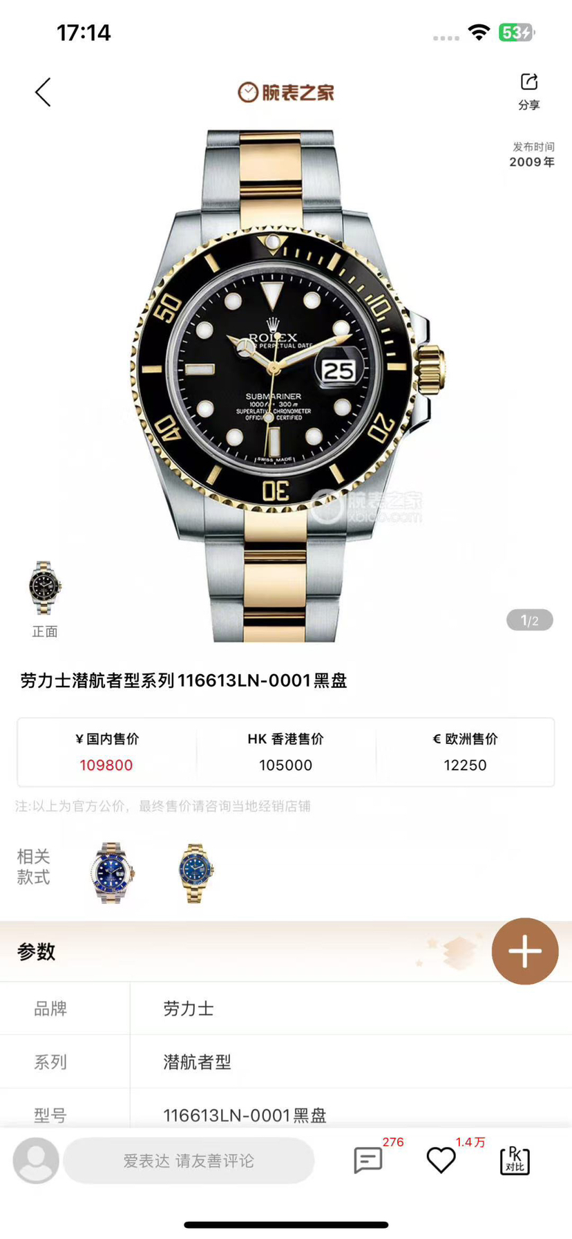 劳力士潜航者型系列116613LN-0001黑盘 蚝式钢 自动机械 日期显示 防磁功能 本店17年全套 现货好价~
