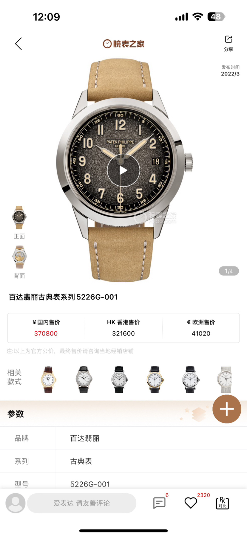25年全新未使用 百达翡丽5226g 国行2025年2月卡全新未使用,带云鱼报告 现货好价,特别有质感的pp