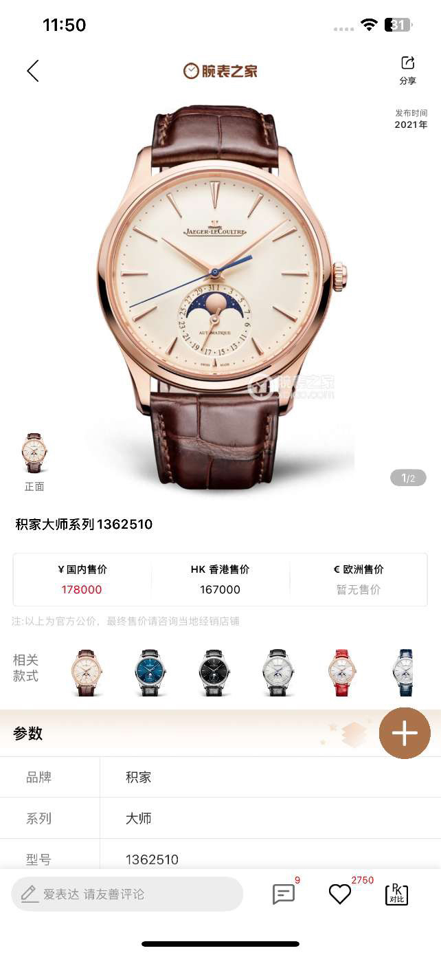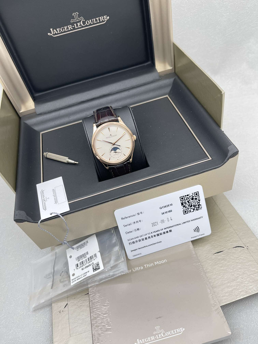 积家大师系列1362510 男士腕表 自动机械 18k玫瑰金材质 表径39毫米 经典耐看 绅士优雅 21年全套 已做八年延保 专柜价178000元 现货好价~