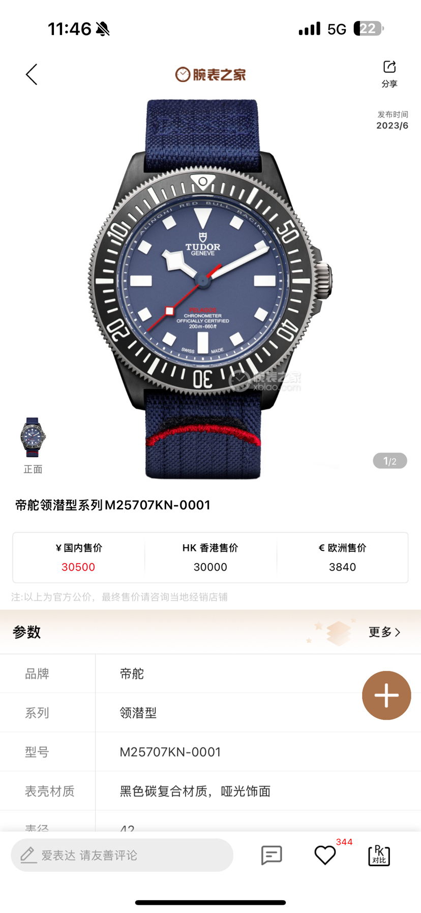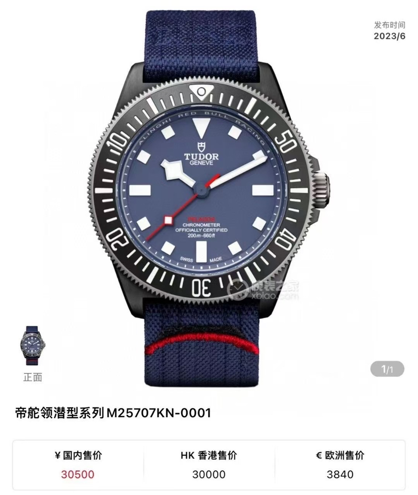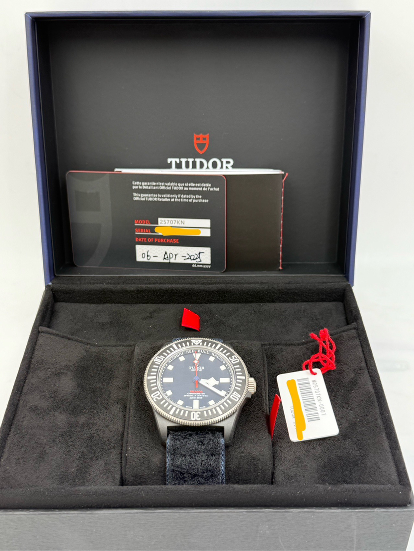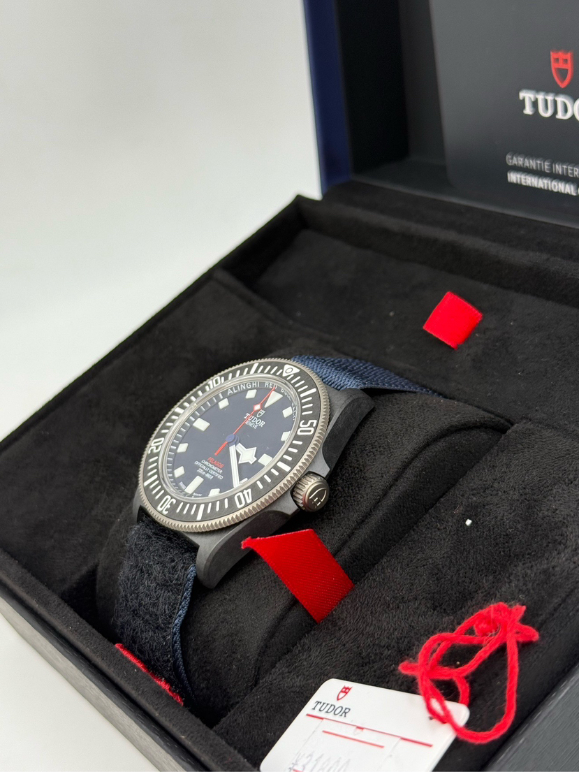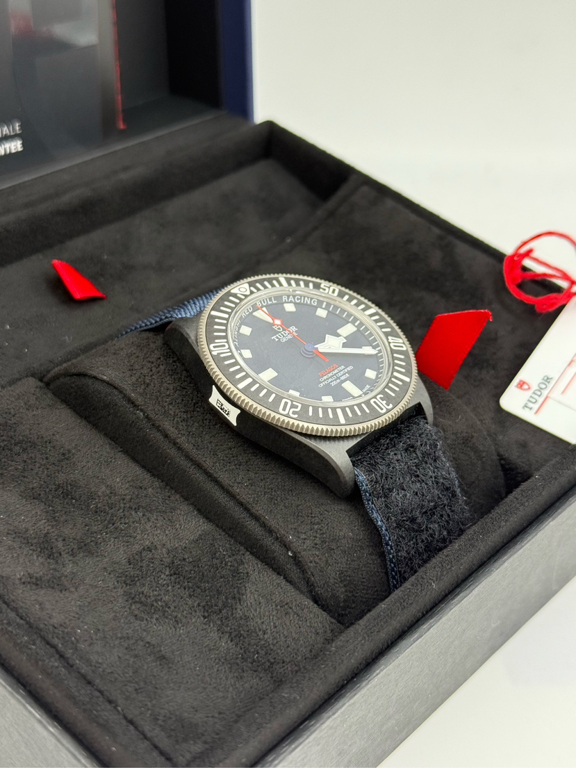 帝舵领潜型 M25707KN-0001 稀缺新款碳纤维领潜型FXD,整表由超轻碳纤维材质打造带来极致轻若无物的佩戴体验,42mm蓝色表盘,夜光刻度指针,红色秒针,黑色单向旋转计时表圈,钛金属把头,搭载自产MT5602自动上链机芯,钛金属底盖,搭配蓝色尼龙Nato回环表带,200米防水!专柜价31800 25年全新全套 未使用4月06日卡,店内现货好价~