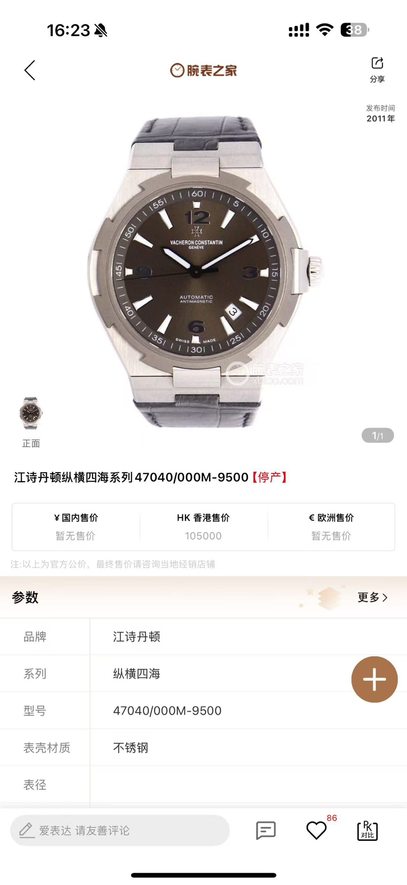 江诗丹顿纵横四海Overseas47040/000M-9500机械男性