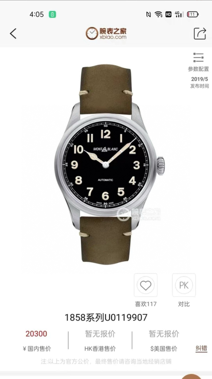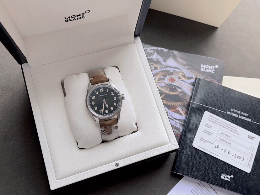 万宝龙 1858系列U0119907 最新男士复古款式 表径40毫米 精钢材质 结合多种经典元素 做旧夜光涂层 以及1930年用的万宝龙logo 2023年04月购入 未使用品 专柜价20300 现好价分享~