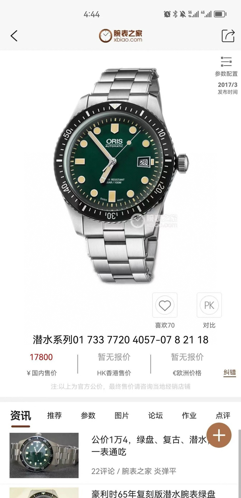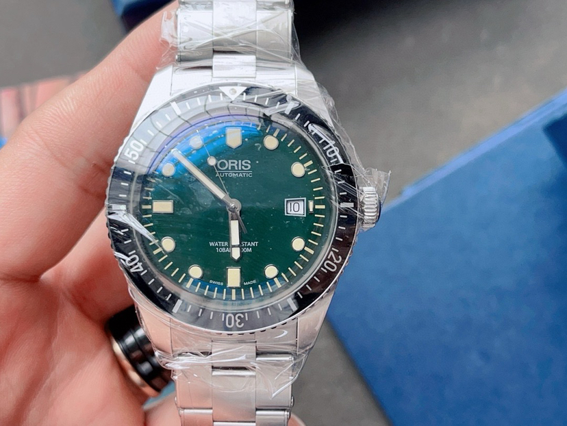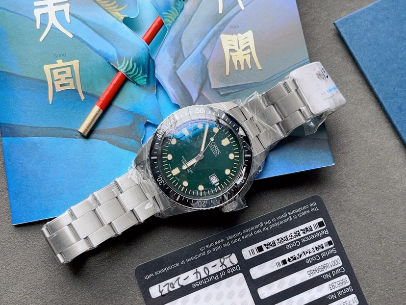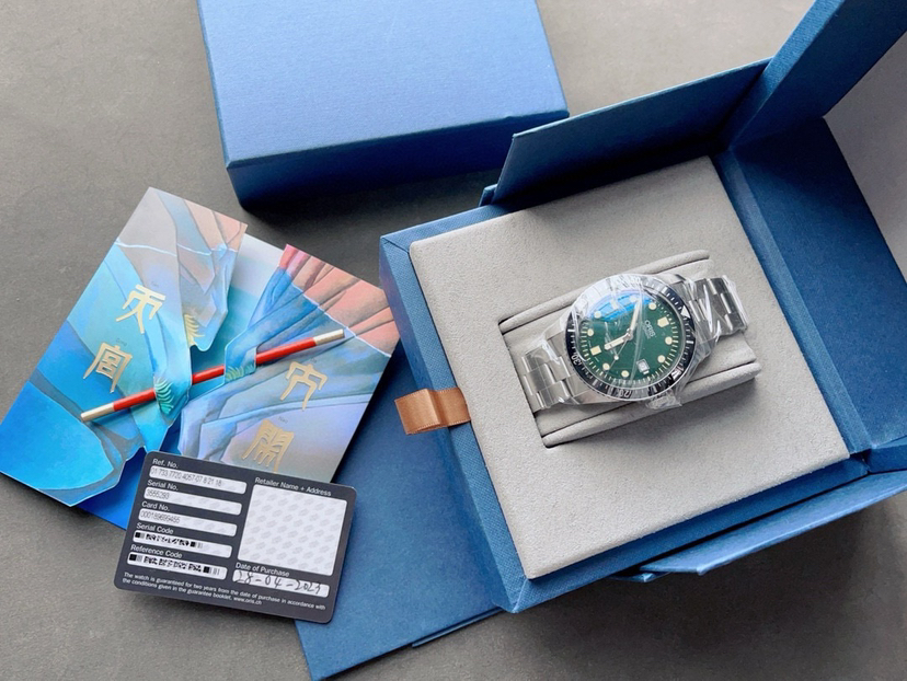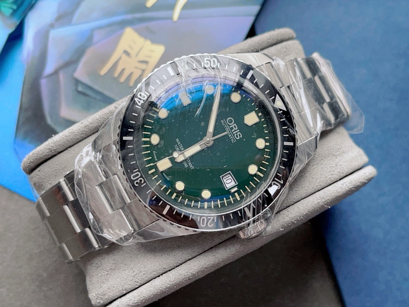 豪利时/Oris Oris Divers 01-733-7720-4057-07-8-21-18 自动机械机芯 多片式不锈钢表壳,分钟刻度显示上圈 42.00 MM, 未使用品 全套齐全 专柜价17800~