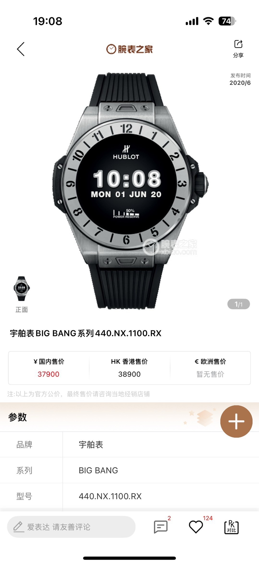 宇博 大爆炸 E智能 440.NX.1100.RX 最贵电子表之一 钛金属表壳 10种面随意切换 一表百搭 表径42mm 工价37900,现单表加原装磁吸充电器只要16000