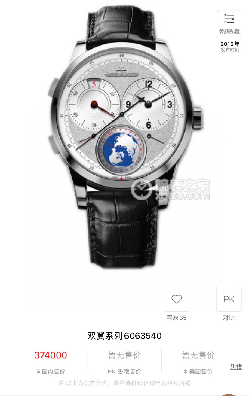 品牌:积家6063540 系列:双翼 机芯类型:手动机械 表径:42mm 表壳材质:18k白金 功能:世界时 库存未使用 空白卡无盒
