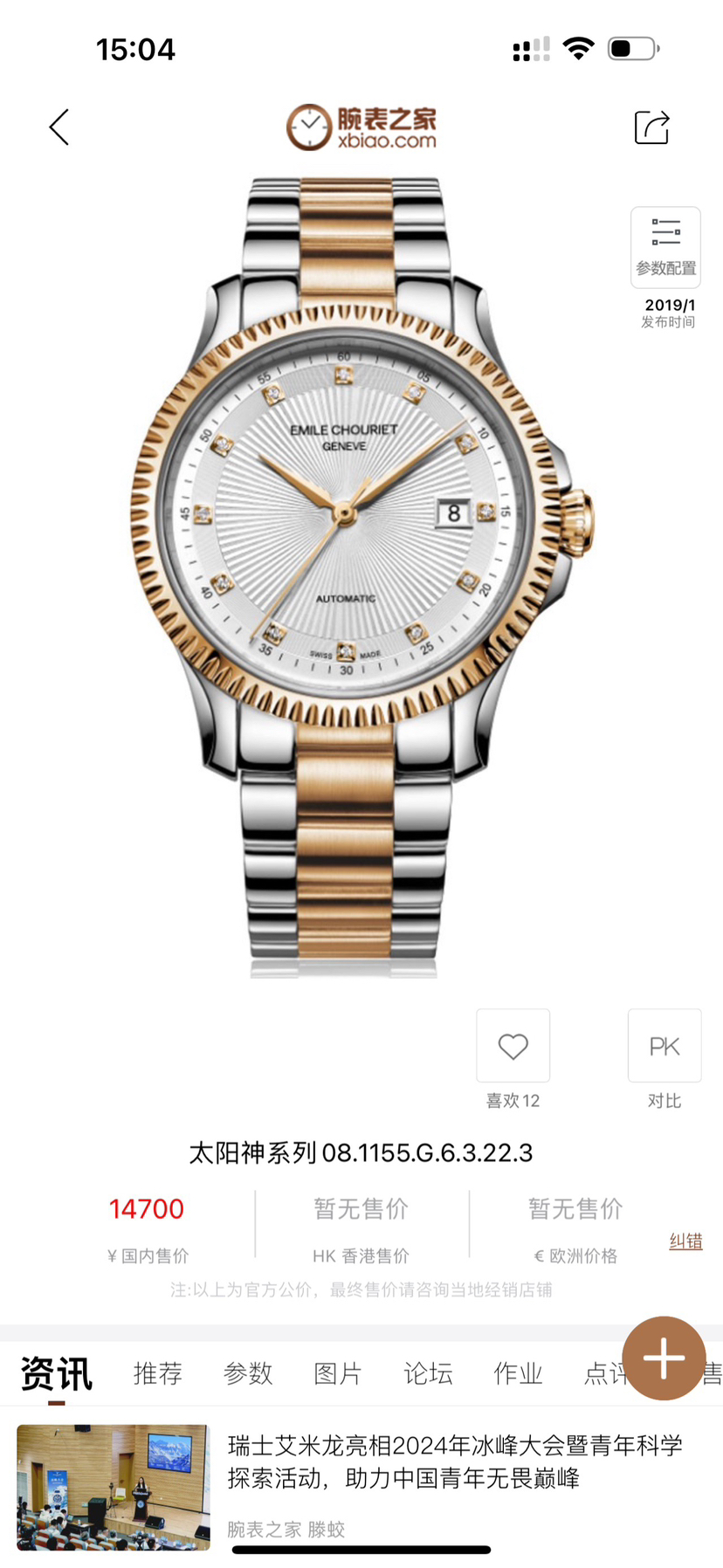 艾米龙 太阳神系列 08.1155.G.6.3.22.3 ,40表径,自动机械男表,公价14700,国行24年全新全套,店内现货秒发~