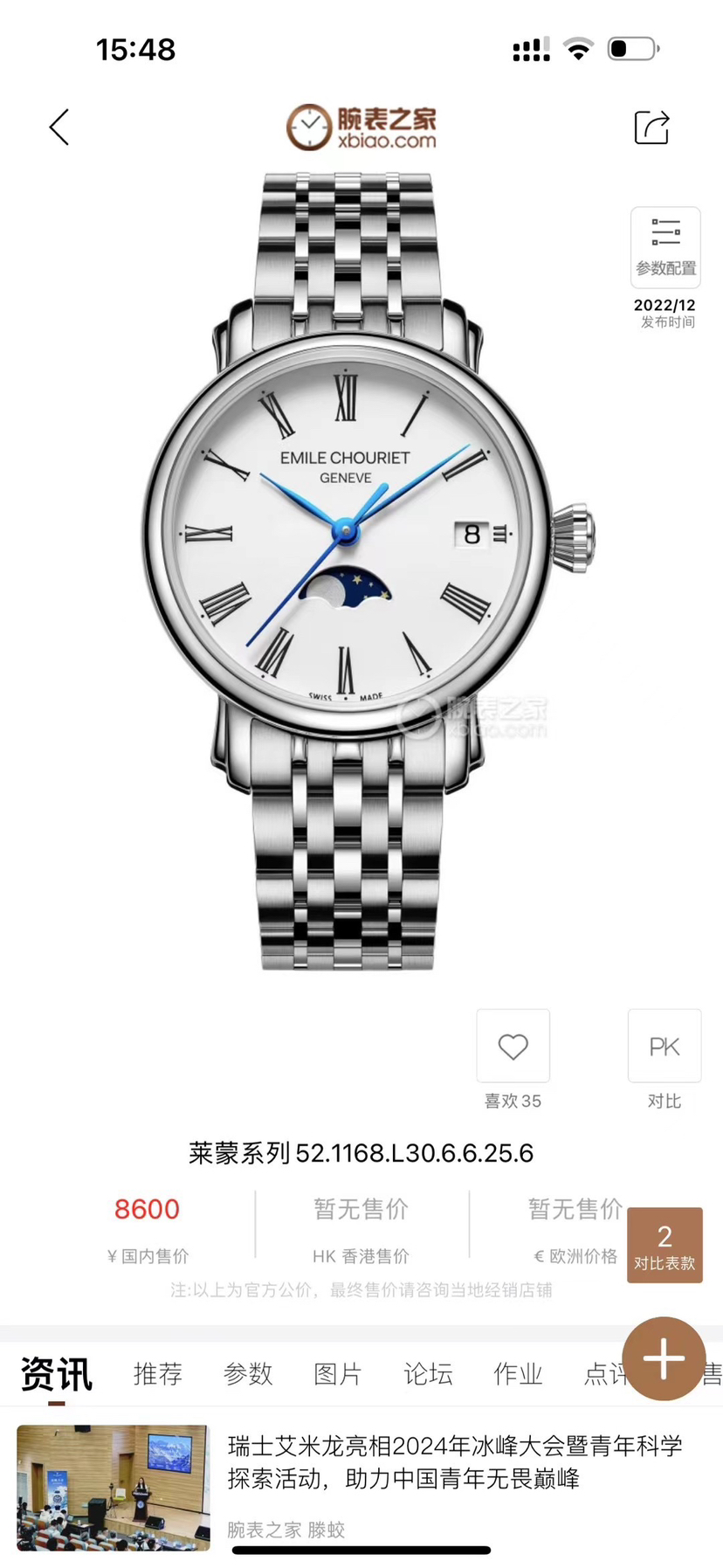 艾米龙/Emile Chouriet 莱蒙 52.1168.L30.6.6.25.6 石英 精钢 30毫米 专柜价 8600,24年国行全新全套 店内现货好价~