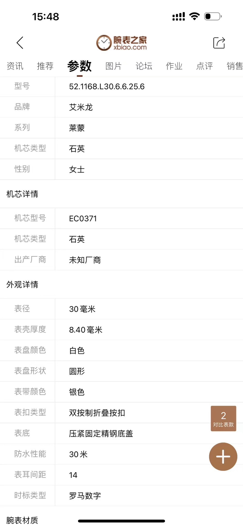 艾米龙莱蒙52.1168.L30.6.6.25.6石英女性