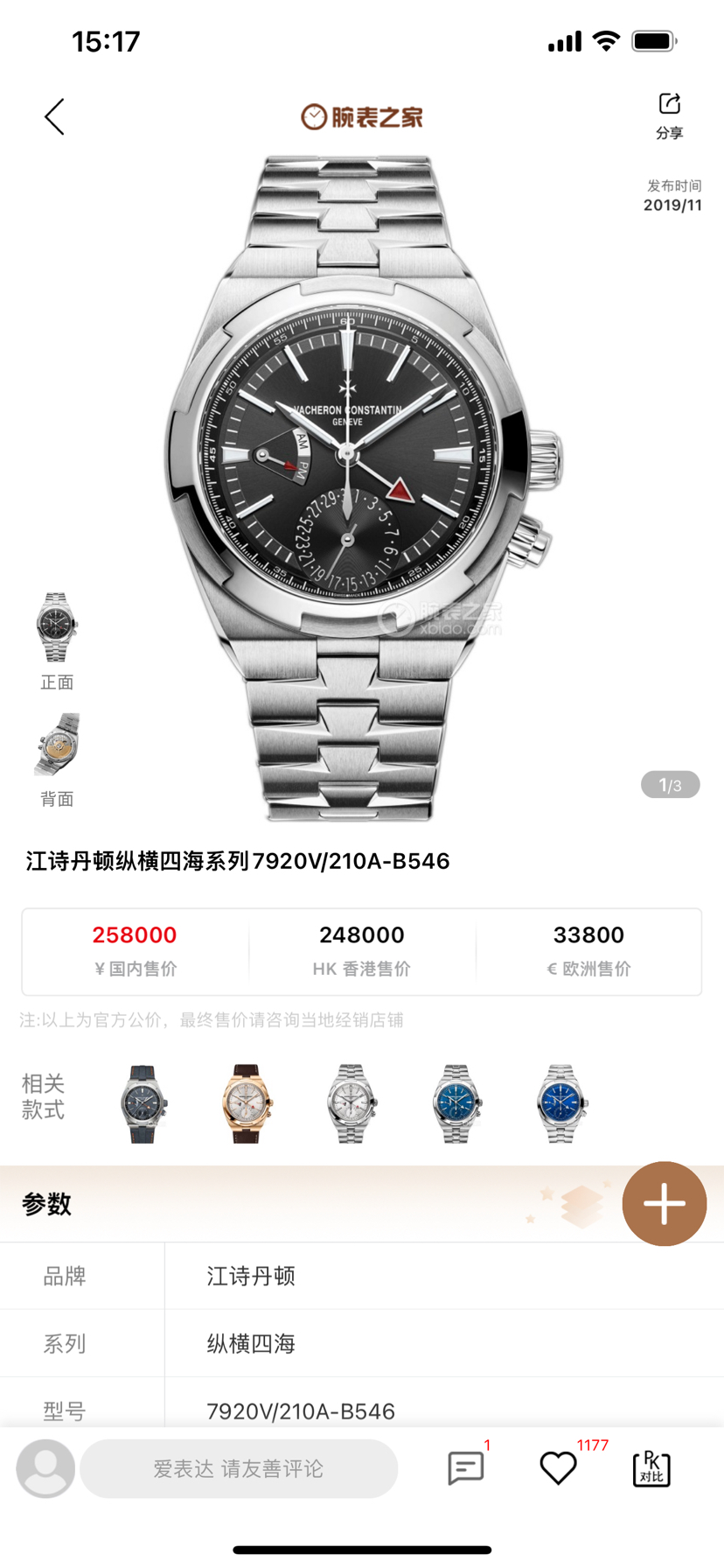 江诗丹顿/Vacheron Constantin 纵横四海 7920V/210A-B546 自动机械,全新未使用,三条表带,专柜售价258000,现货好价