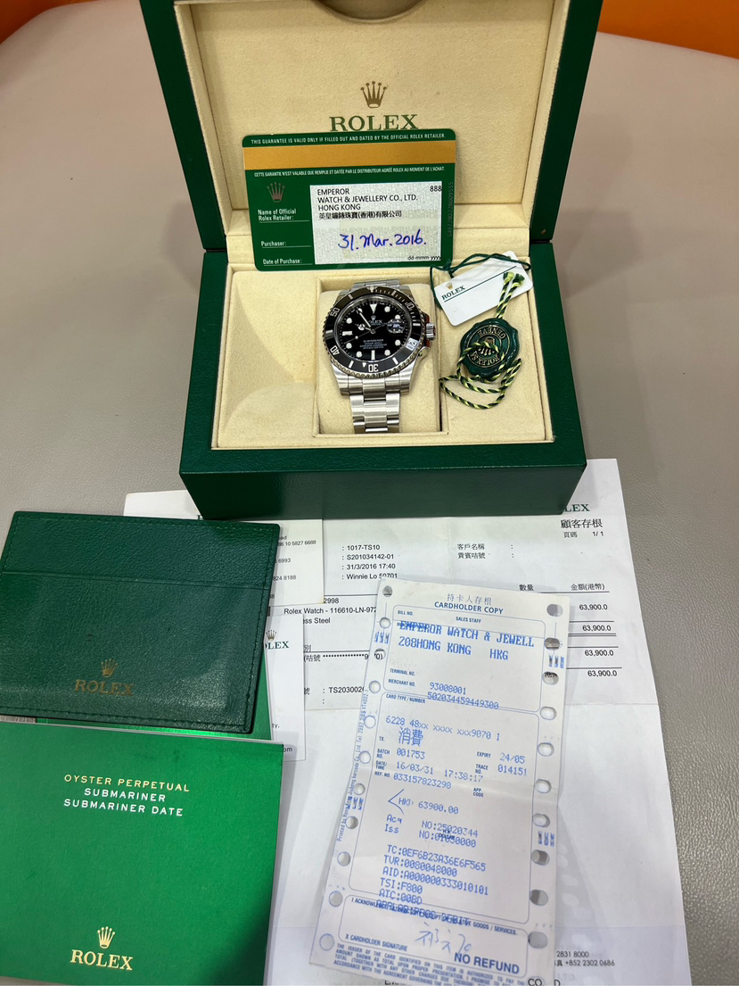 16年二手全套,劳力士/Rolex 潜航者日历型 m116610ln-0001 自动机械机芯 蚝式钢 40毫米 专柜价80300