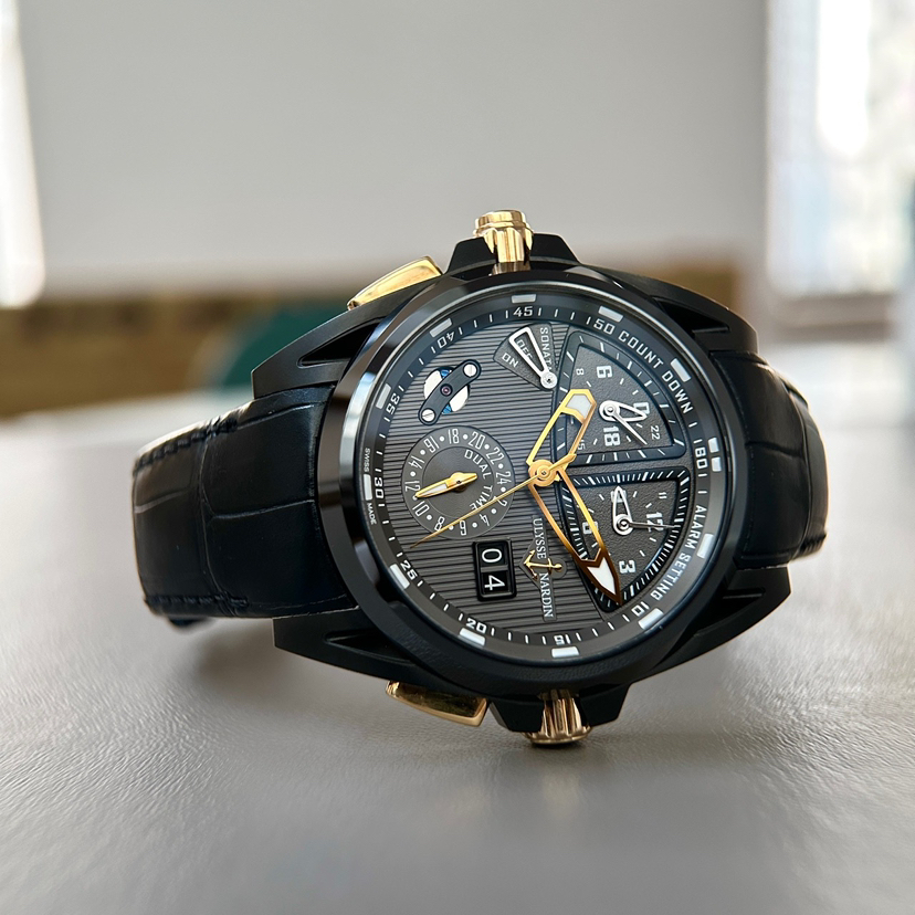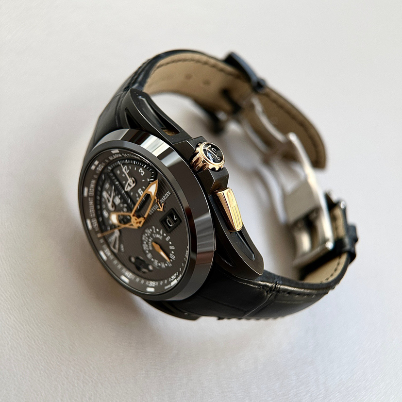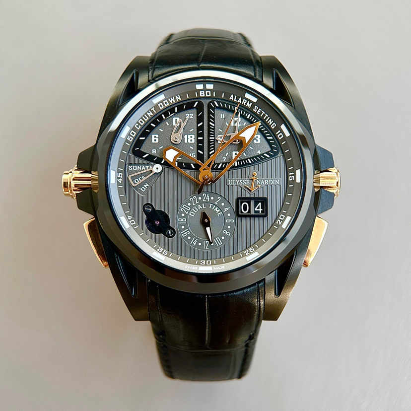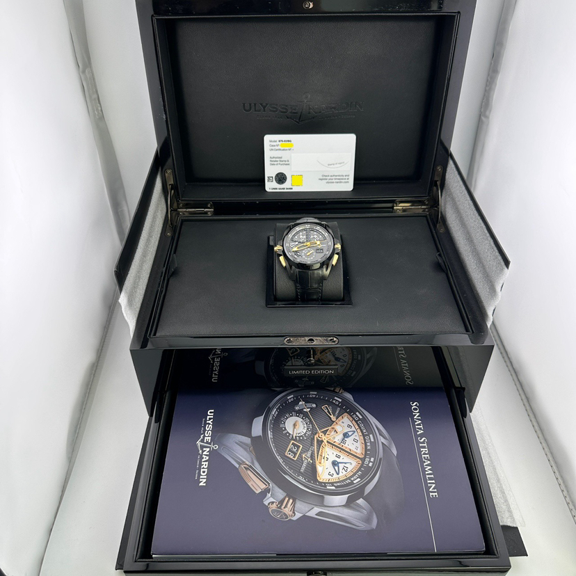 雅典/Ulysse Nardin 复杂功能 675-02/BQ 自动UN-66机芯/动储50/钛合金+玫瑰金/表径44/限量100/专柜价345300~空白卡,现货全套好价!