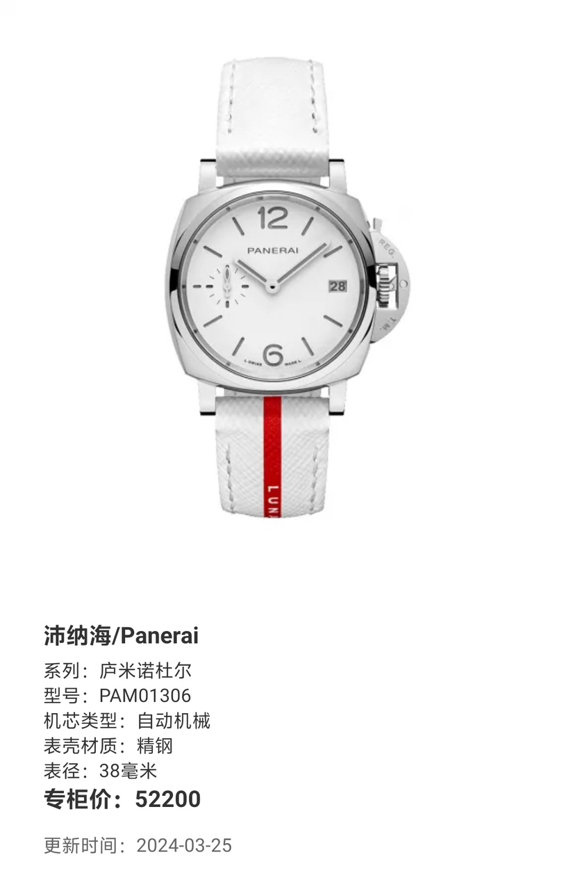 沛纳海Luminor Due庐米诺杜尔PAM01306机械女性
