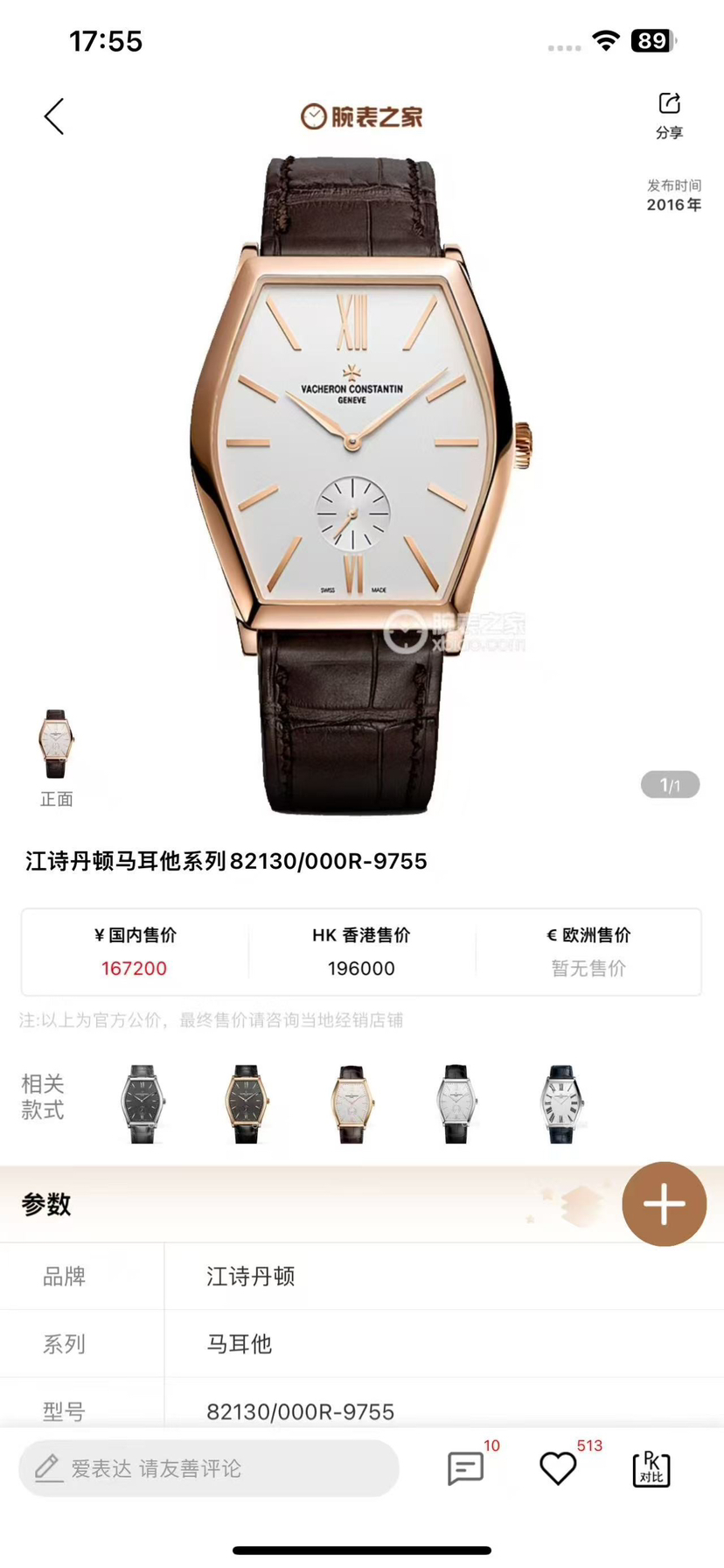 江诗丹顿马耳他系列82130/000R-9755 酒桶型 18K玫瑰金材质 手动机械 36.7*47.6mm 单表 公价16.72w 现货好价