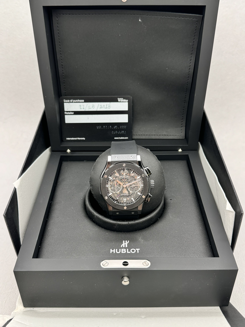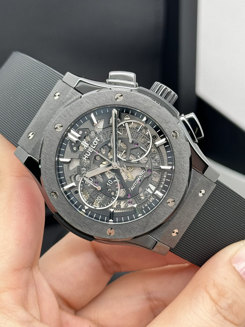 宇舶表经典融合系列525.CM.0170.RX 黑陶瓷表壳 自动机械 45mm 计时功能 日期显示 镂空表盘 超级炫酷 18年全套 公价12.06w 本店现货好价