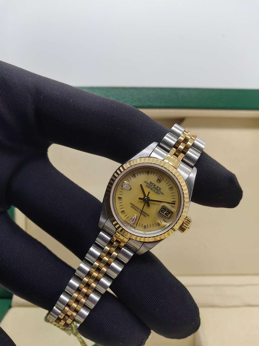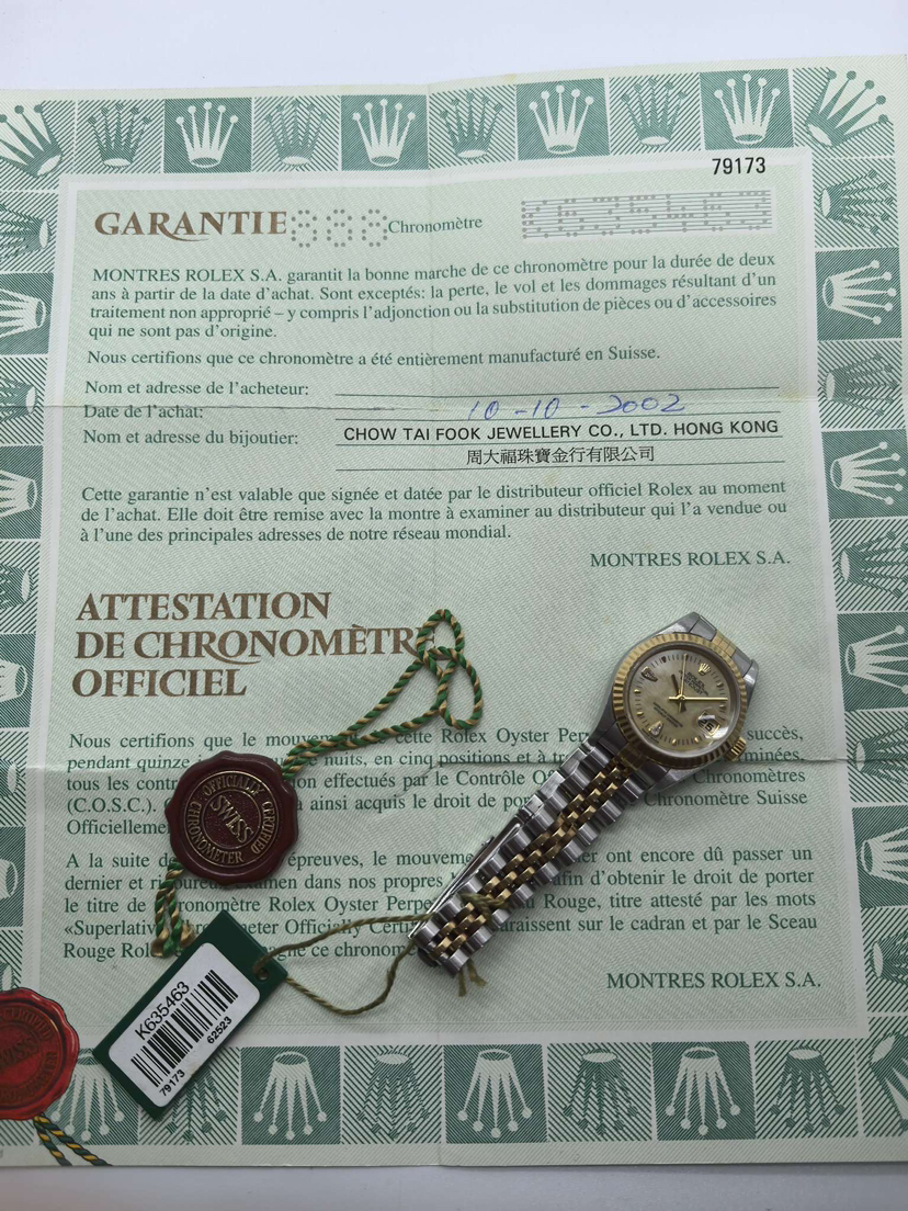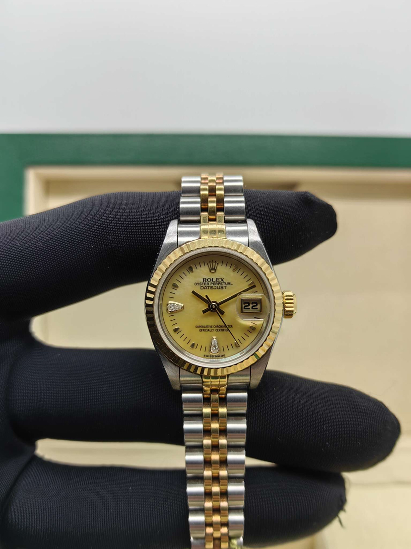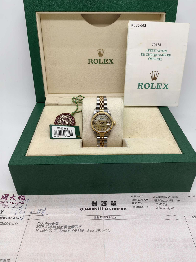 劳力士女装日志系列79173 稀有贝壳盘水滴钻石 精钢与18K黄金材质 2002年K字头保书 原始好品 无盒~