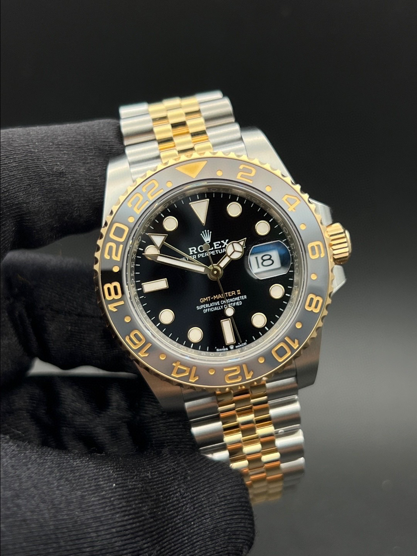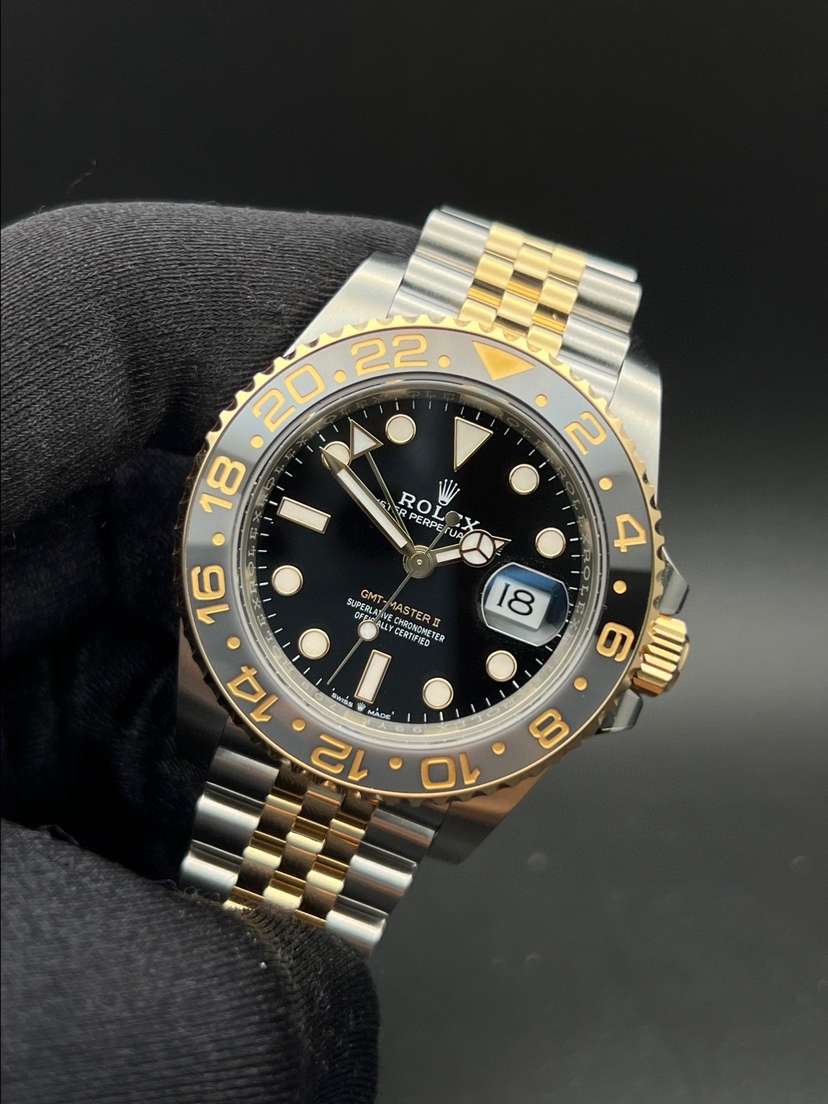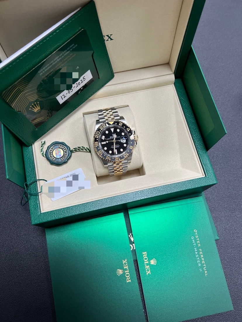 劳力士格林尼治126713-0001皮蛋圈,表盘40毫米,附件如图,国行全新未使用2025年05月12日,五珠链两地时,俗称皮蛋圈,双时区,颜值超靓,佩戴舒适