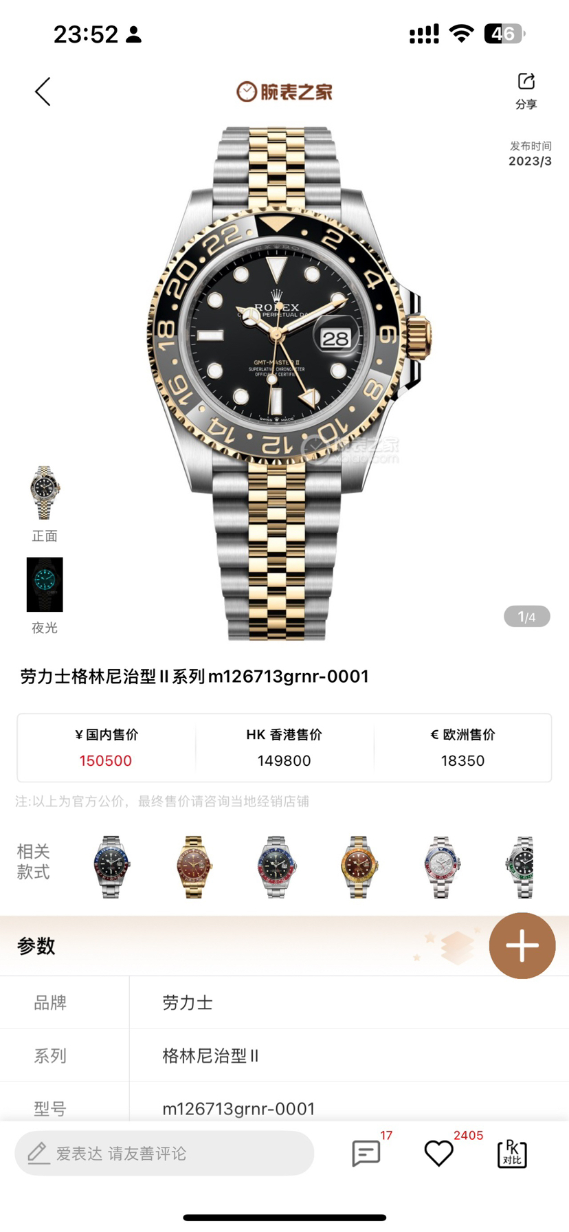 劳力士格林尼治型II 皮蛋圈 M126713GRNR-0001自动机械男性