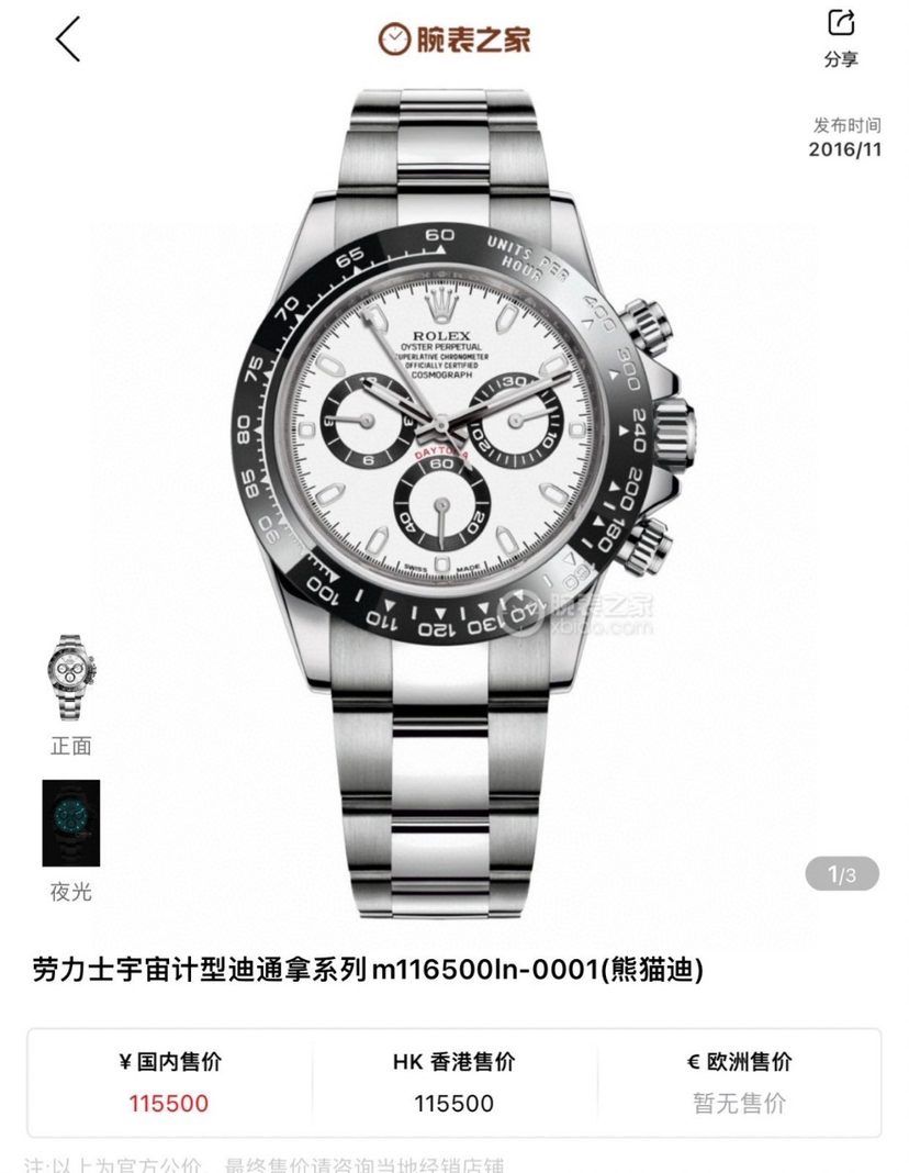 劳力士宇宙计型迪通拿 熊猫迪 M116500LN-0001自动机械男性