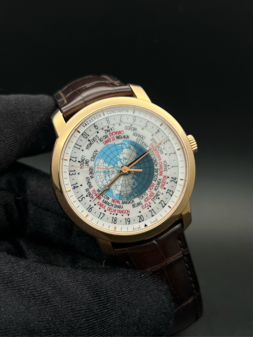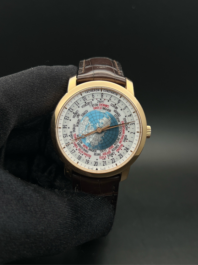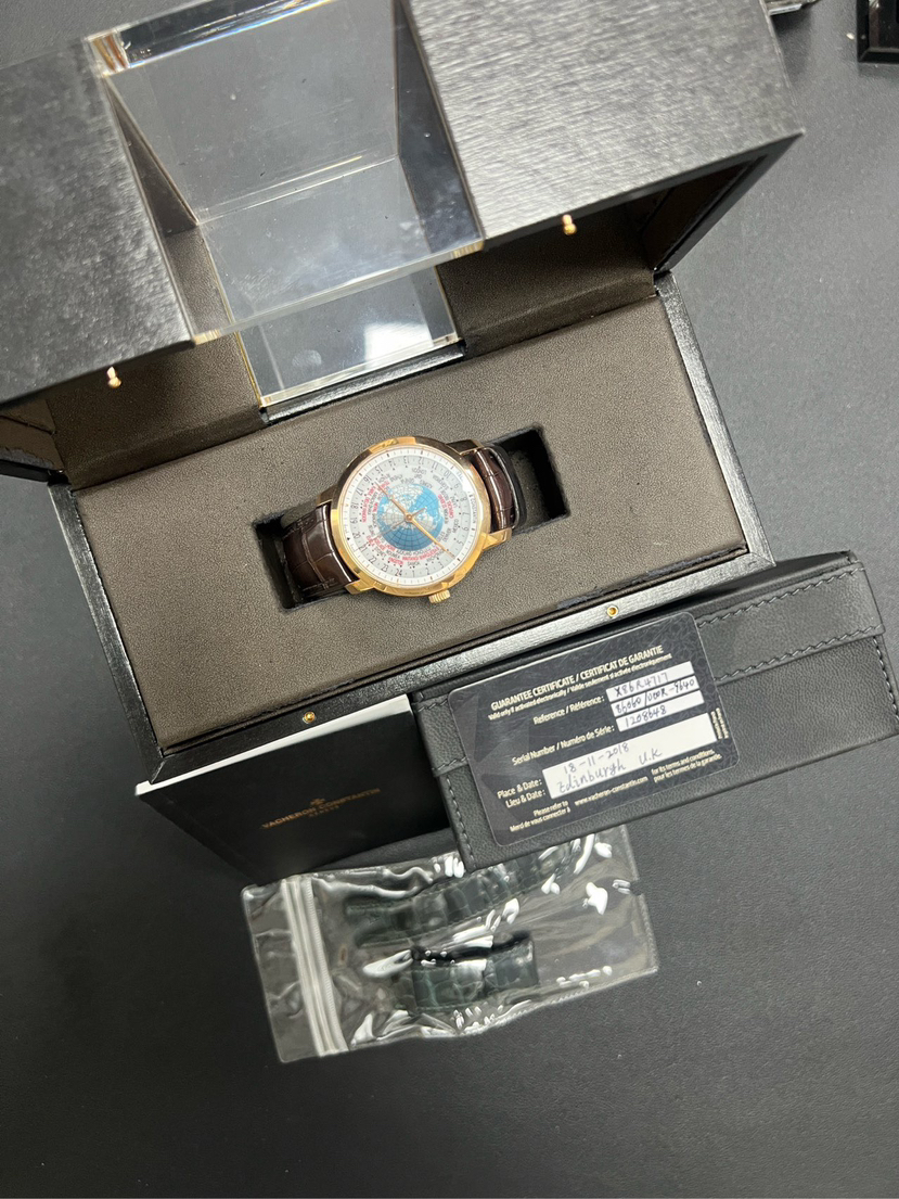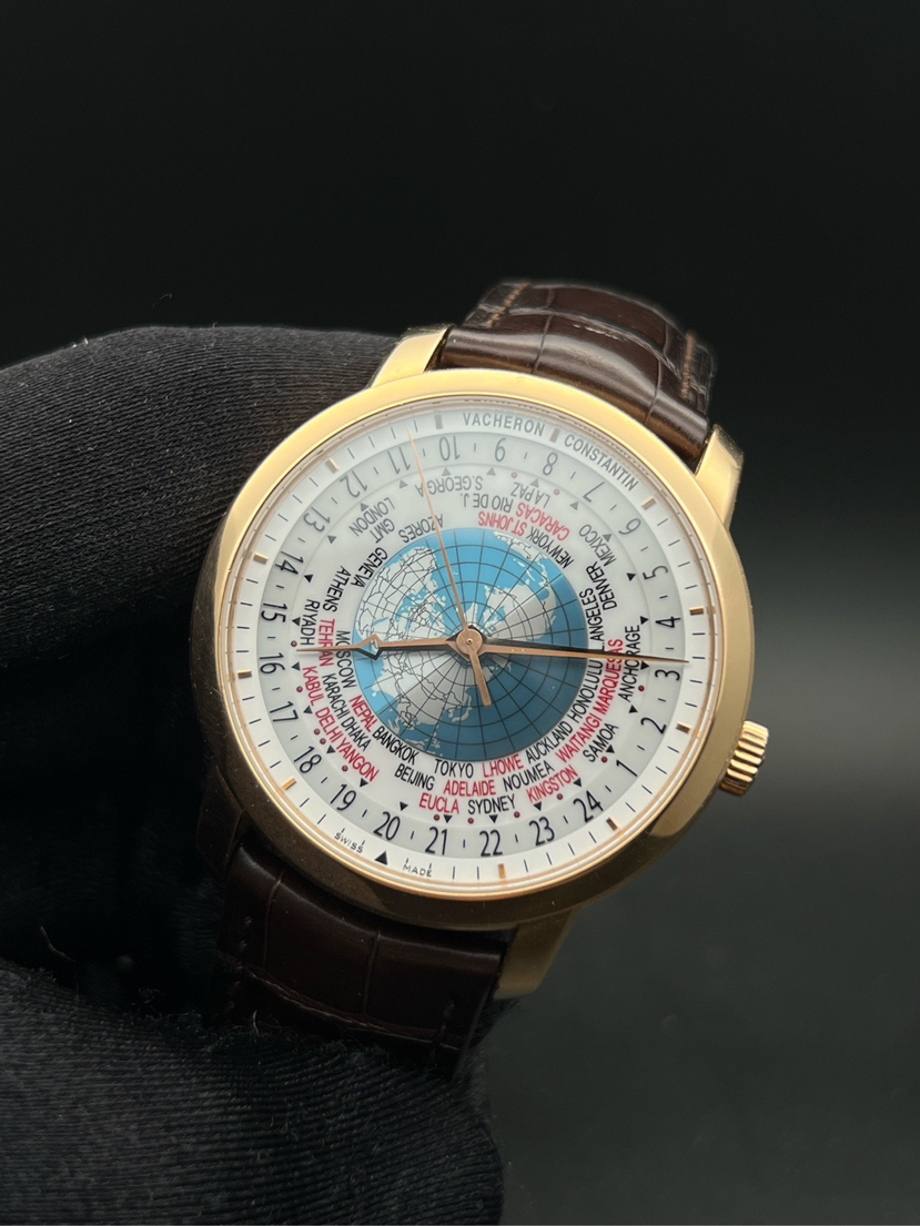 江诗丹顿传袭系列86060/000R-9640,世界时复杂功能 男士腕表 18k玫瑰金材质 表径42.5mm 蓝宝石玻璃 透底机芯 折叠扣 2018年11月28号 公价365000元
