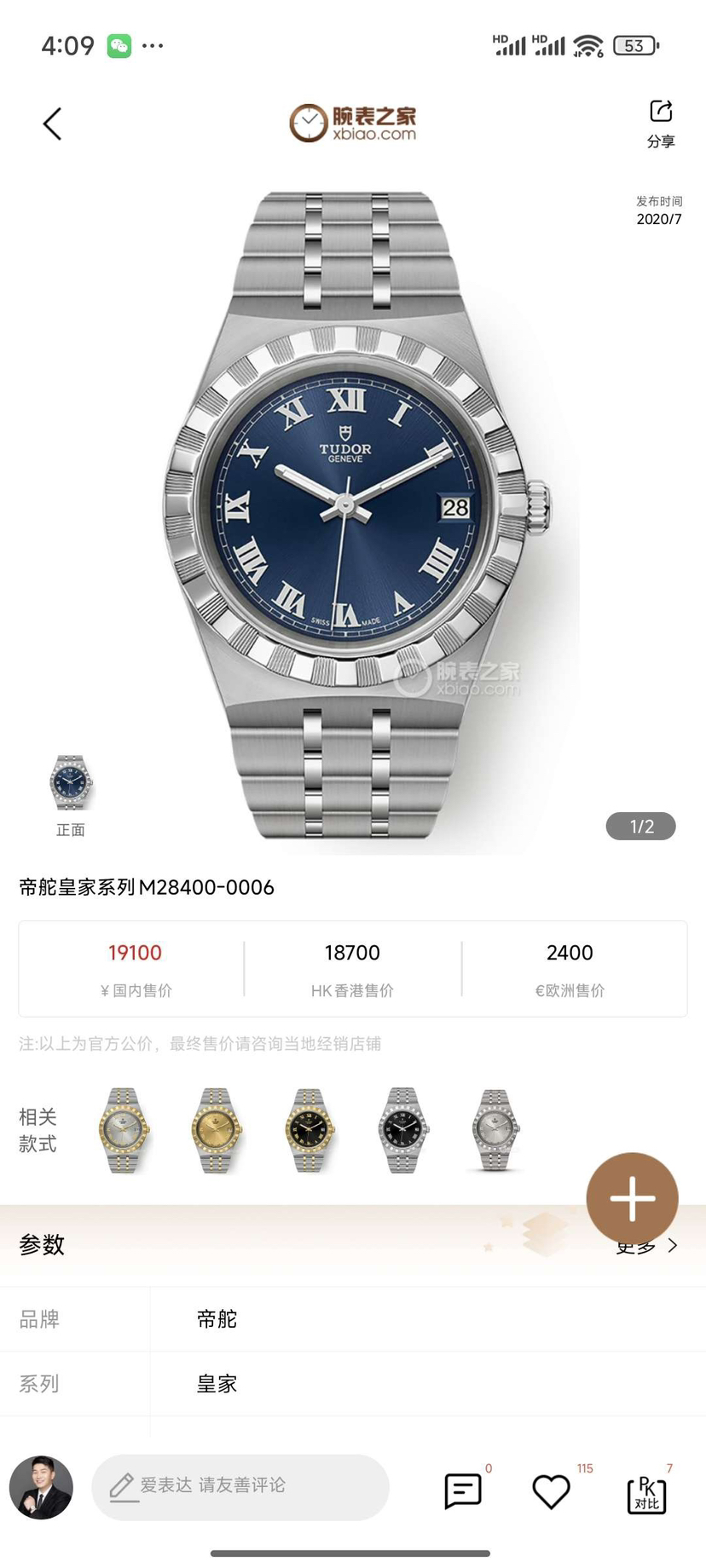 帝舵/Tudor 帝舵皇家系列 m28400-0006 自动上链 钢表壳 34毫米 国行全新未使用25年5月卡 公价19700