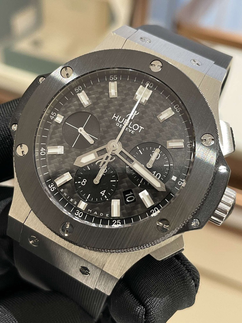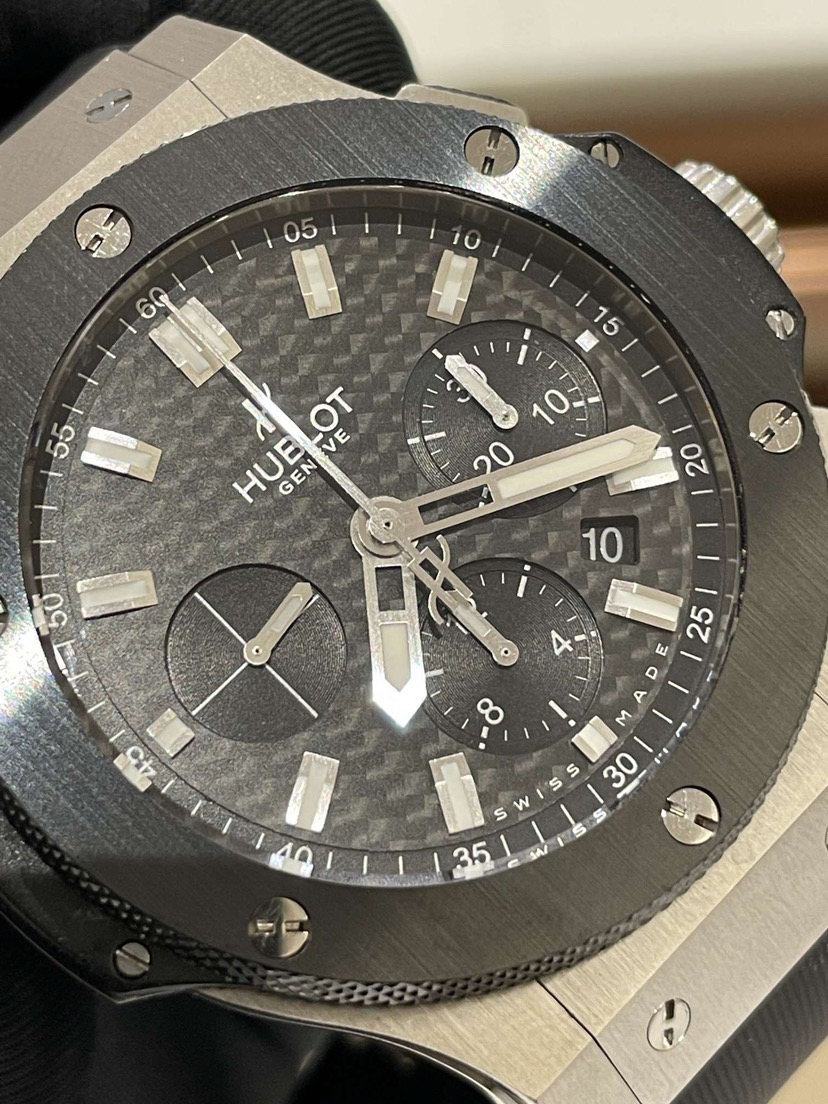 宇舶-大爆炸,301.SM.1770.RX,单表无配件,品相完美,44毫米自动机械计时,碳纤维面,陶瓷圈。原价102900,