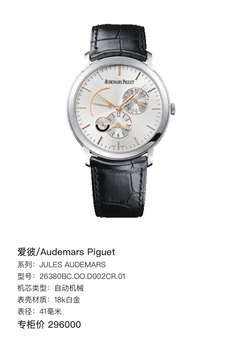 爱彼/Audemars Piguet JULES AUDEMARS 26380BC.OO.D002CR.01 自动机械 18k白金 41毫米 附件:单表 专柜价296000