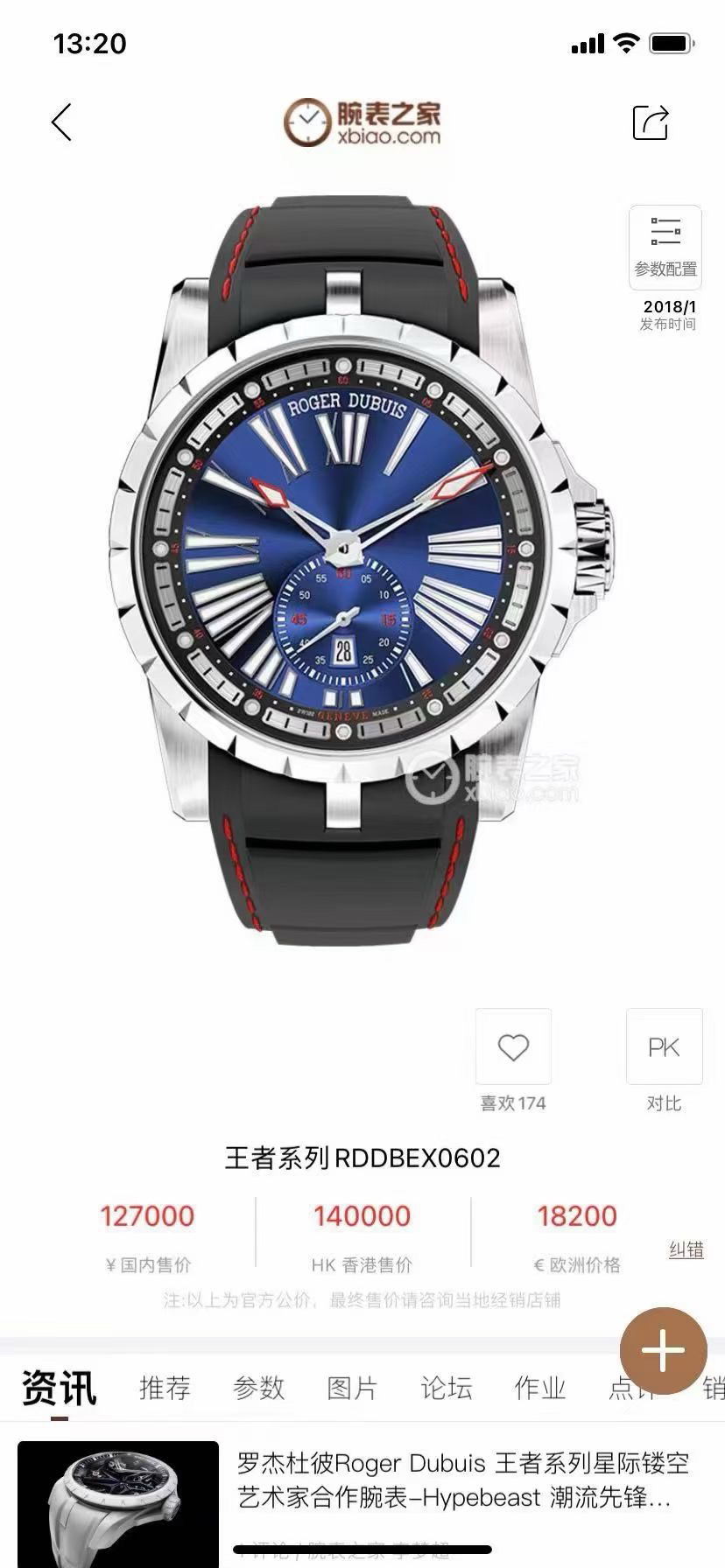 罗杰杜彼王者系列RDDBEX0602、自动机械、动力储备48小时、表径45mm、钛合金材质、日期显示、参考公价127000、现货好价