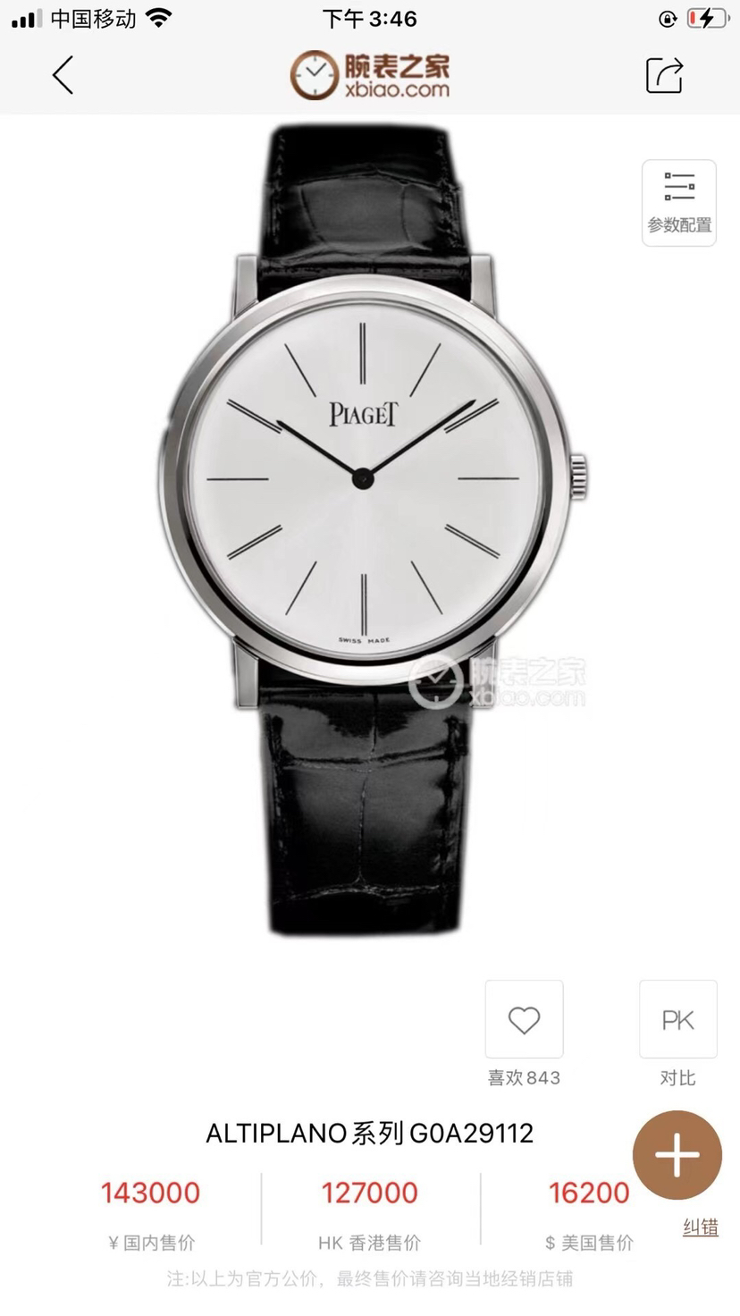 伯爵 ALTIPLANO系列 G0A29112,手动机械机芯,表径38mm,18K白金后加钻,针面盘完美 走时准确 无钻参考公价143000,现货单表好价