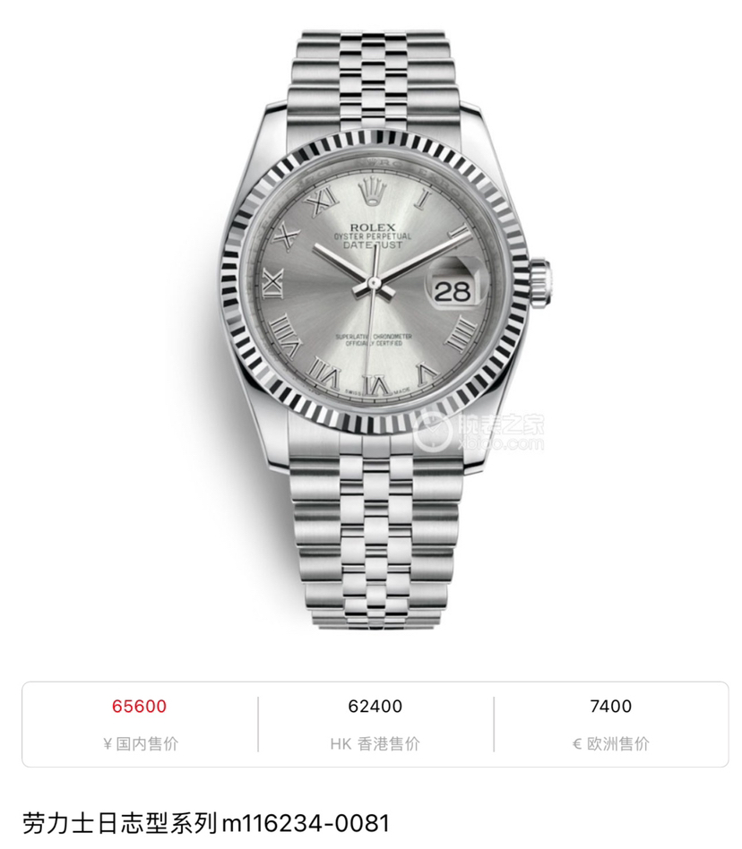Rolex劳力士m116234-0081日志系列 116234银盘罗马文 男士自动机械表径36毫米 2017年大全套 闲置未使用品 原膜 公价65600 店内现货好价