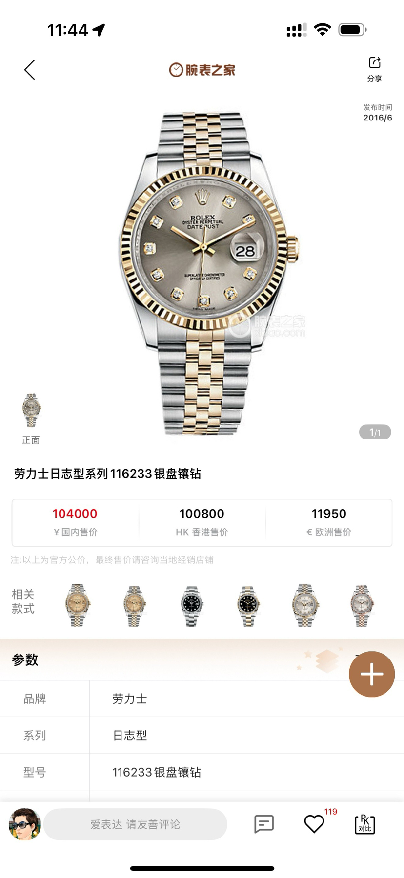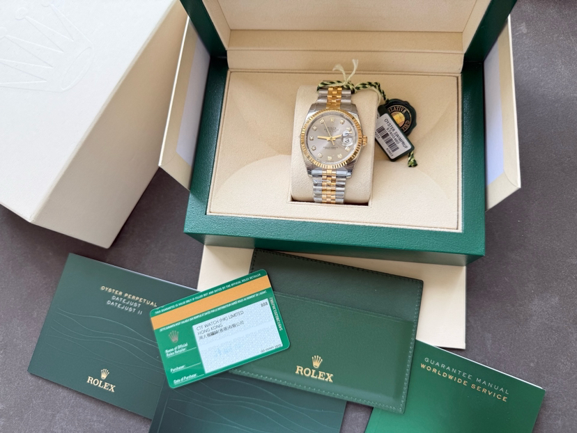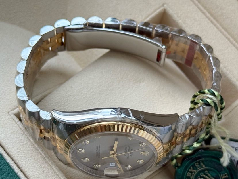 【闲置全新全膜】劳力士116233男士日志型,间18k黄金,银灰面钻刻,表径36mm,闲置全新全膜二维码均在,15年8月保卡,乱码,公价104000,现货好价