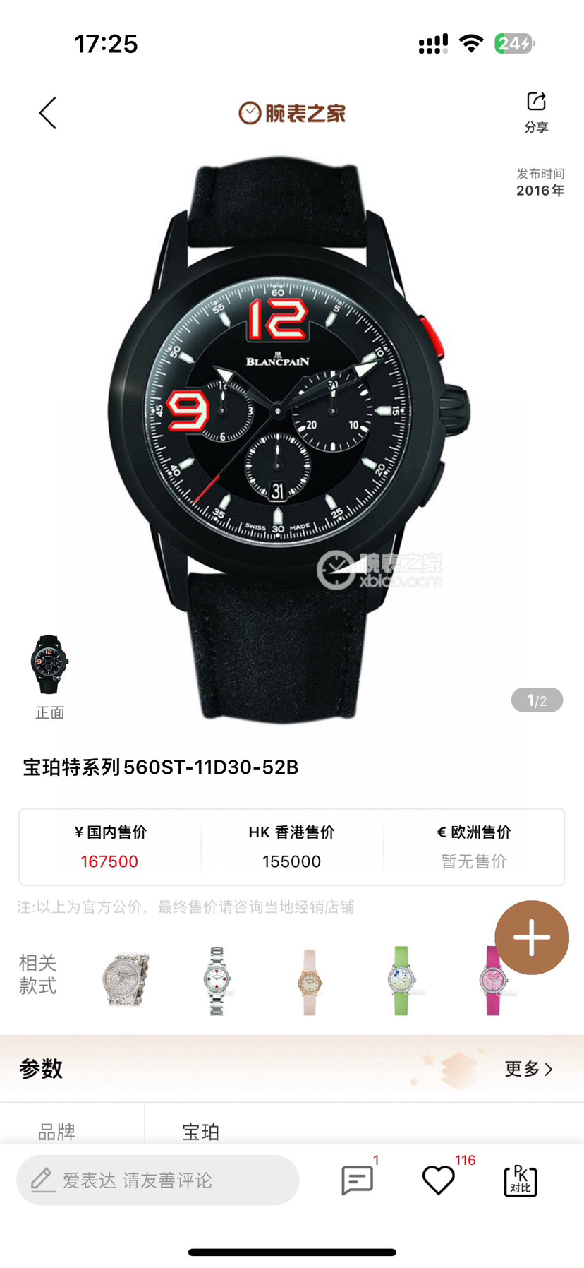 单表,宝珀特系列560ST-11D30-52B自动机械男表 表径43.5MM PVD镀黑材质 限量300只 宝珀限量特别款 折叠扣 专柜价167500