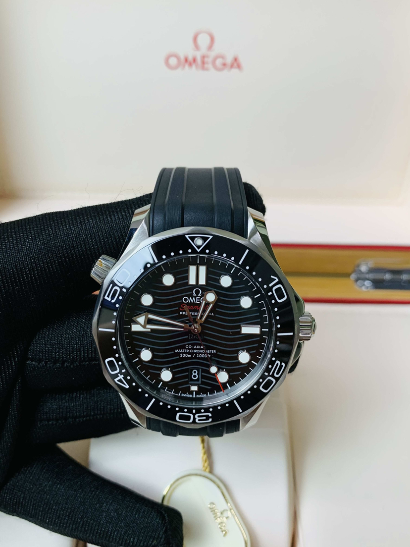 全新全套25年OMEGA欧米茄 海马系列300米潜水表 自动机械机芯 夜光 天文台认证 男表 瑞表 42mm 黑色表盘 精钢表壳 橡胶表带210.32.42.20.01.001