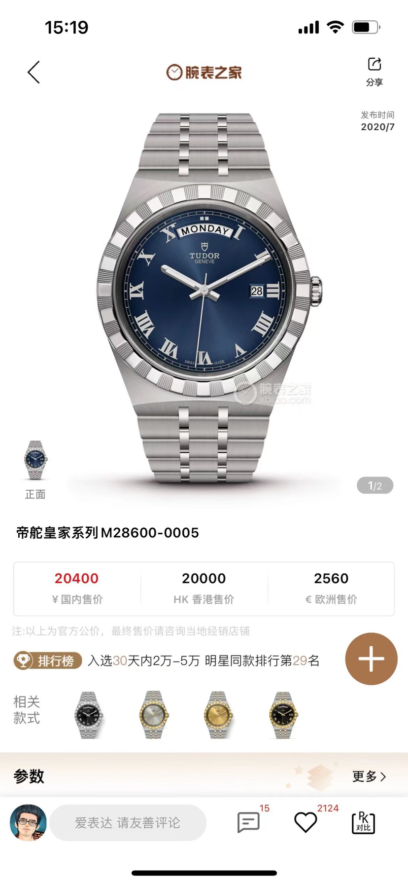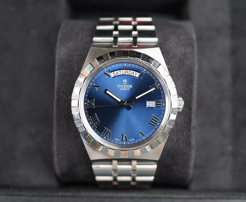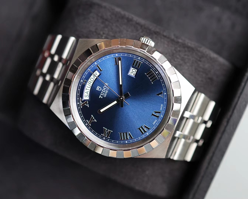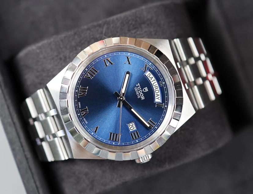 帝舵皇家系列帝舵28600-0005男士腕表,自动机械,表径41mm,精钢材质,蓝色盘 罗马刻度 ,日期星期显示,95新 官价20400,现好价