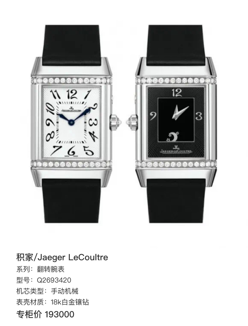积家/Jaeger LeCoultre 翻转腕表 Q2693420 手动机械 18k白金镶钻 尺寸40-25 专柜价193000 性价比极高 双面佩戴 金钻材料都不少 低调白金款 大号 好价秒