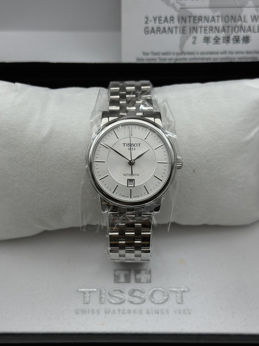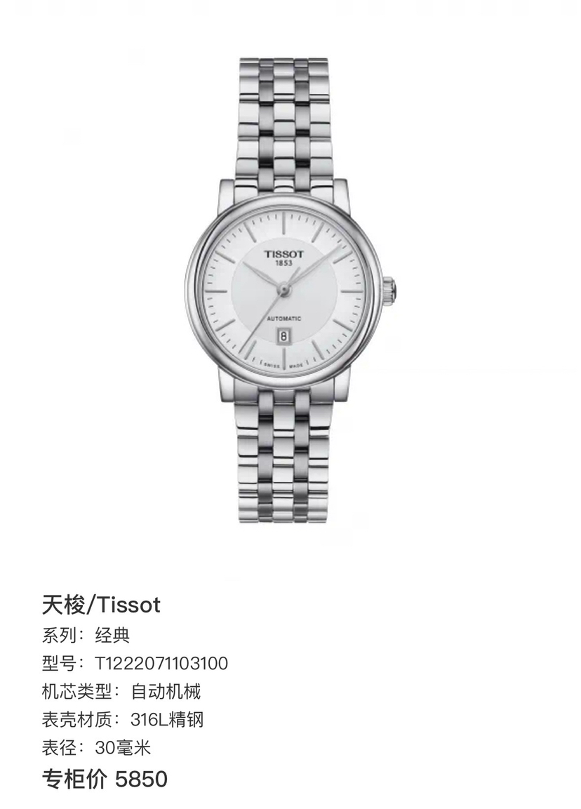 天梭 新款卡森系列 T1222071103100自动机械女士腕表,表径30mm,316L精钢材质,拱形抗刮伤蓝宝石玻璃表镜,2025年全新未使用全套 公价5850现货特价!