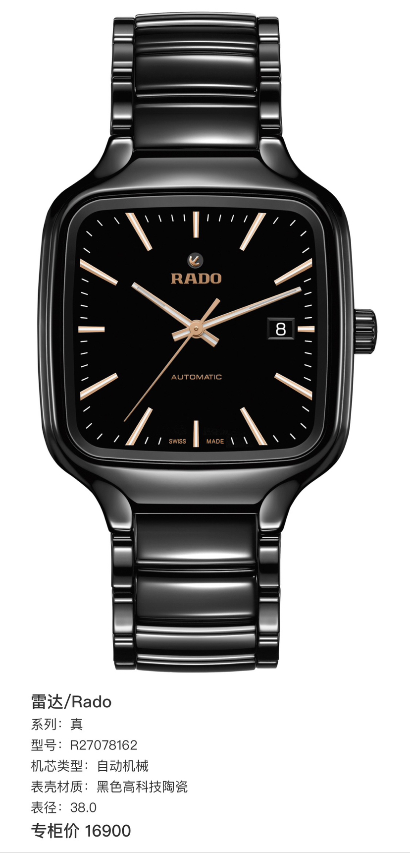 雷达/Rado 真 R27078162 自动机械 黑色高科技陶瓷 38.0 专柜价16900