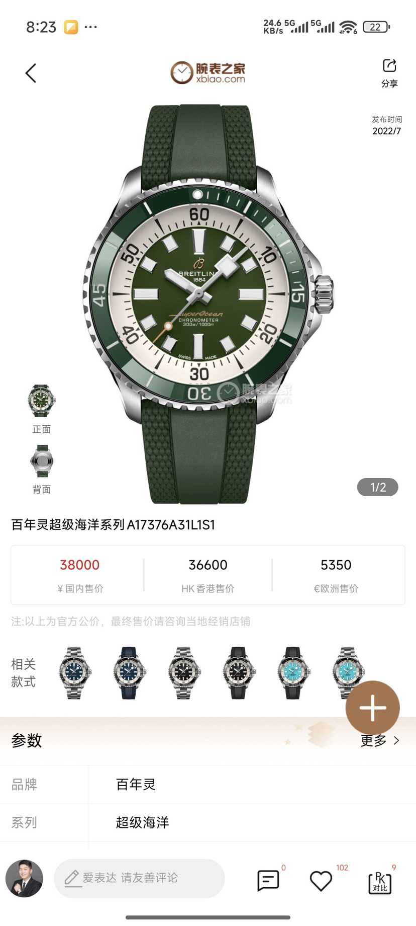 百年灵超级海洋(Superocean)A17376A31L1S1机械男性