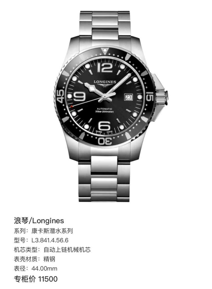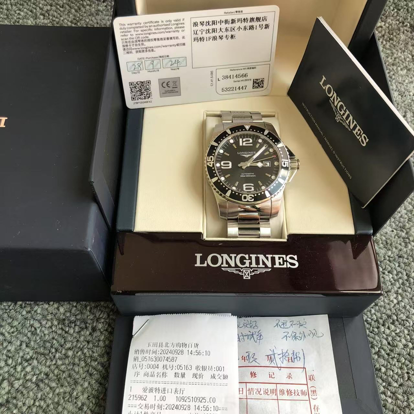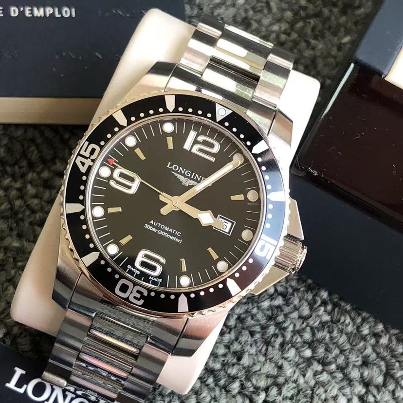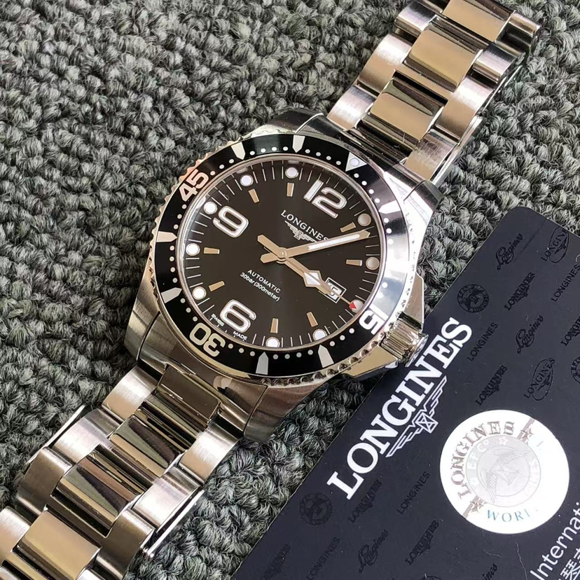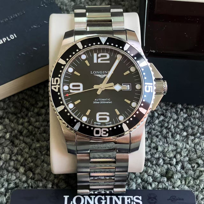 浪琴康卡斯系列L3.841.4.56.6男士自动机械腕表,公价11500元,表径44mm,全套在保,成色95新,旋转外圈,锁把设计,热门保值款