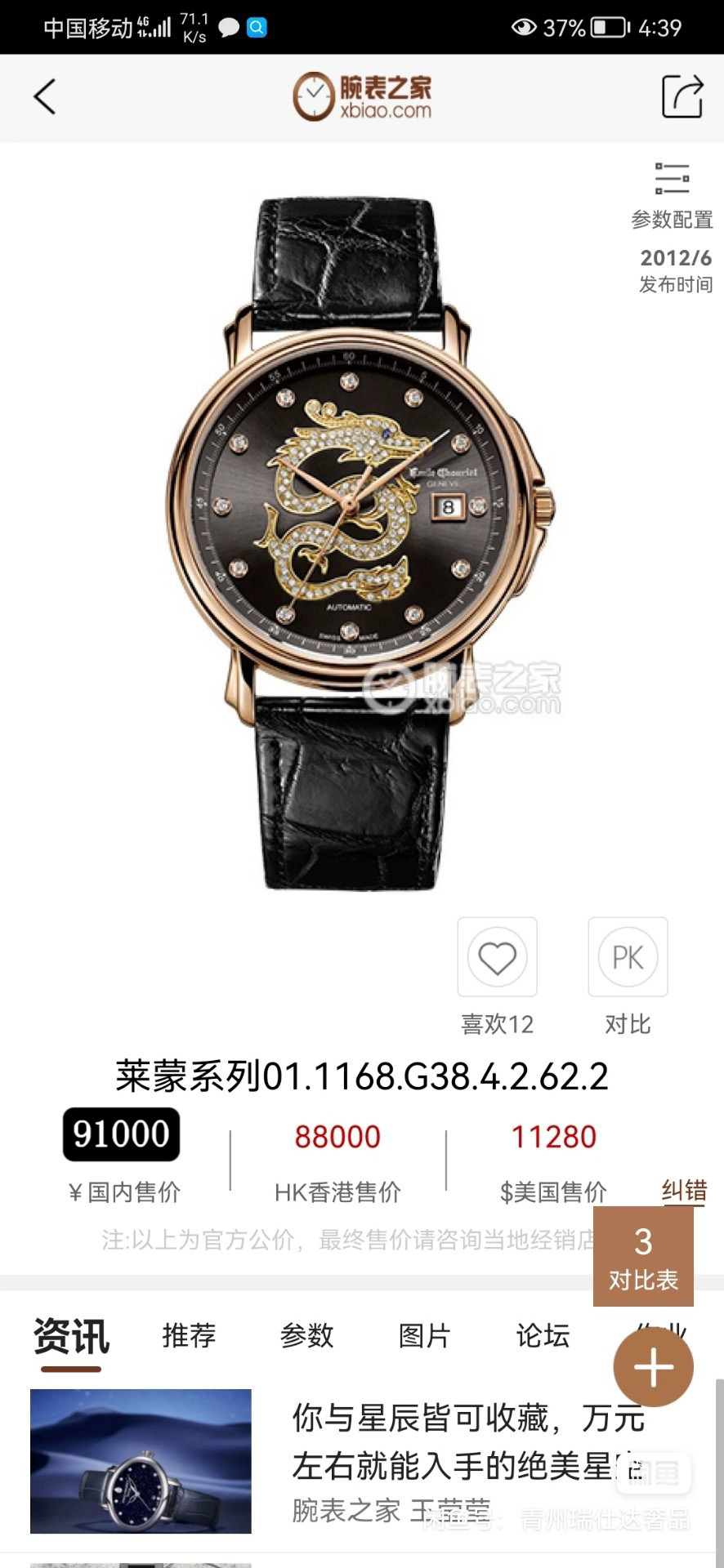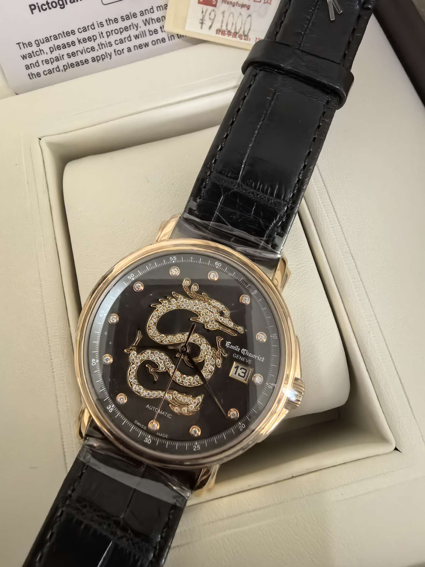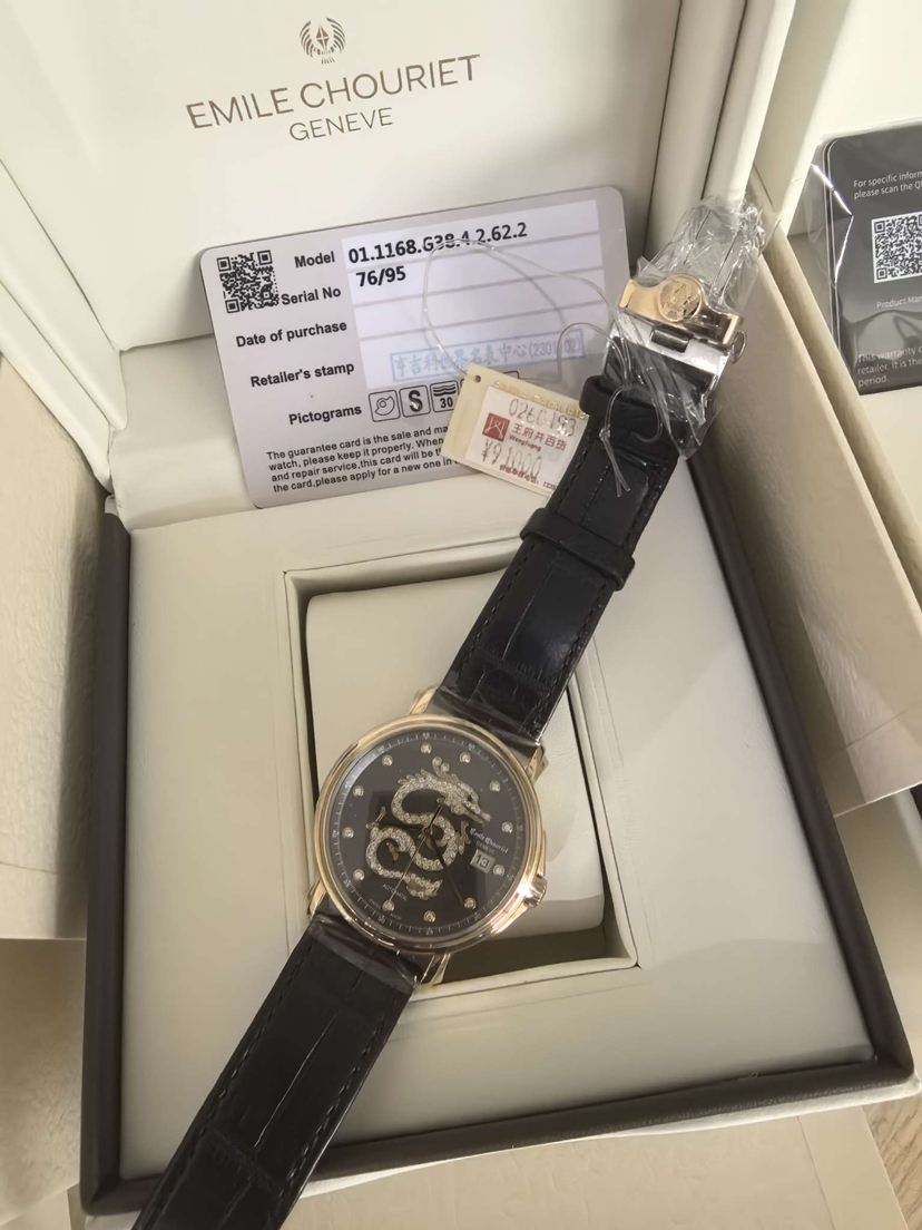 艾米龙莱蒙系列龙表 01.1168.G38.4.2.62.2全球限量95只 蕴意九五至尊,镶嵌173颗钻石和一颗蓝宝石 表壳18K玫瑰金材质 自动机械 表径38mm 好折扣