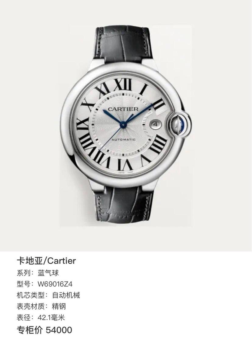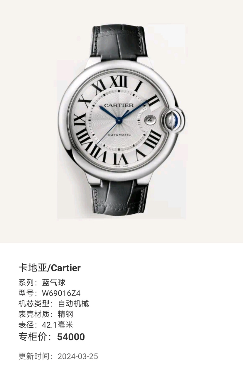 卡地亚蓝气球BALLON BLANCW69016Z4机械男性
