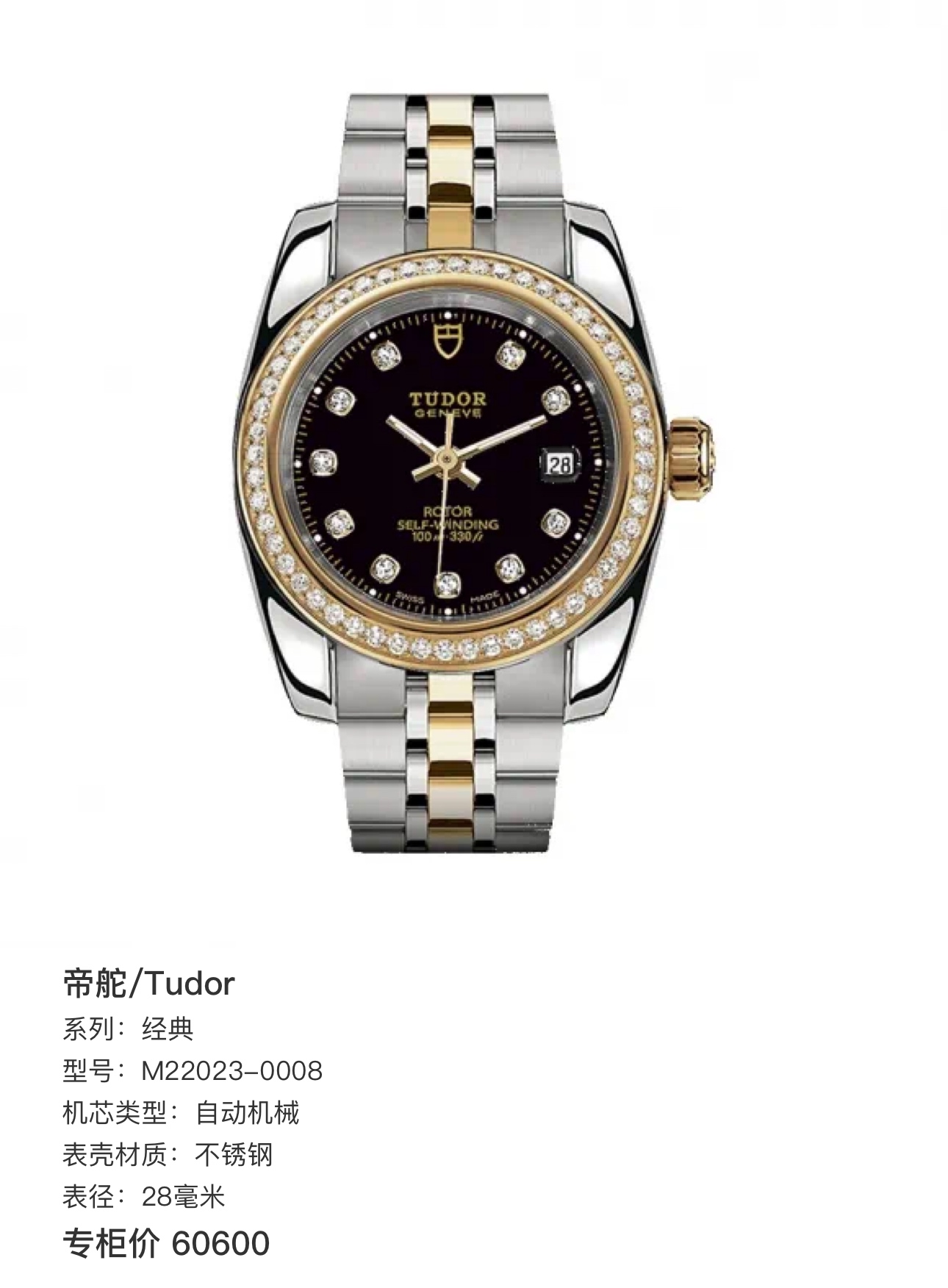 帝舵/Tudor 经典 M22023-0008 自动机械 不锈钢 28毫米 专柜价60600~