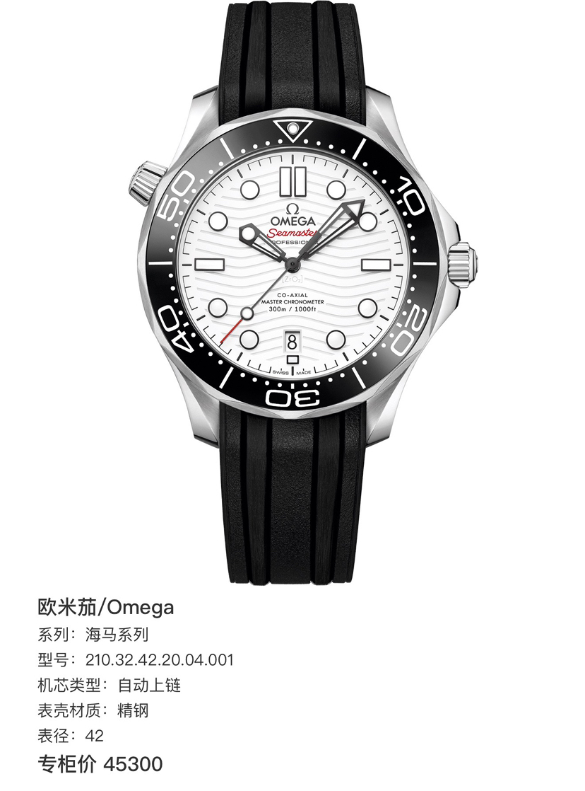 欧米茄/Omega 海马系列 210.32.42.20.04.001 自动上链 精钢 42 专柜价45300,最新84字头,2024年12月大全套,整表充新成色。~