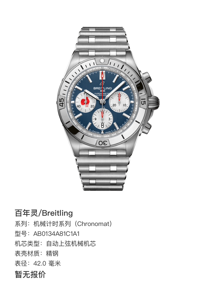百年灵机械计时法国高卢雄鸡AB0134A81C1A1,Breitling,自动机械,精钢,42表径,200米防水,限量150支,日期、计时,25年全套