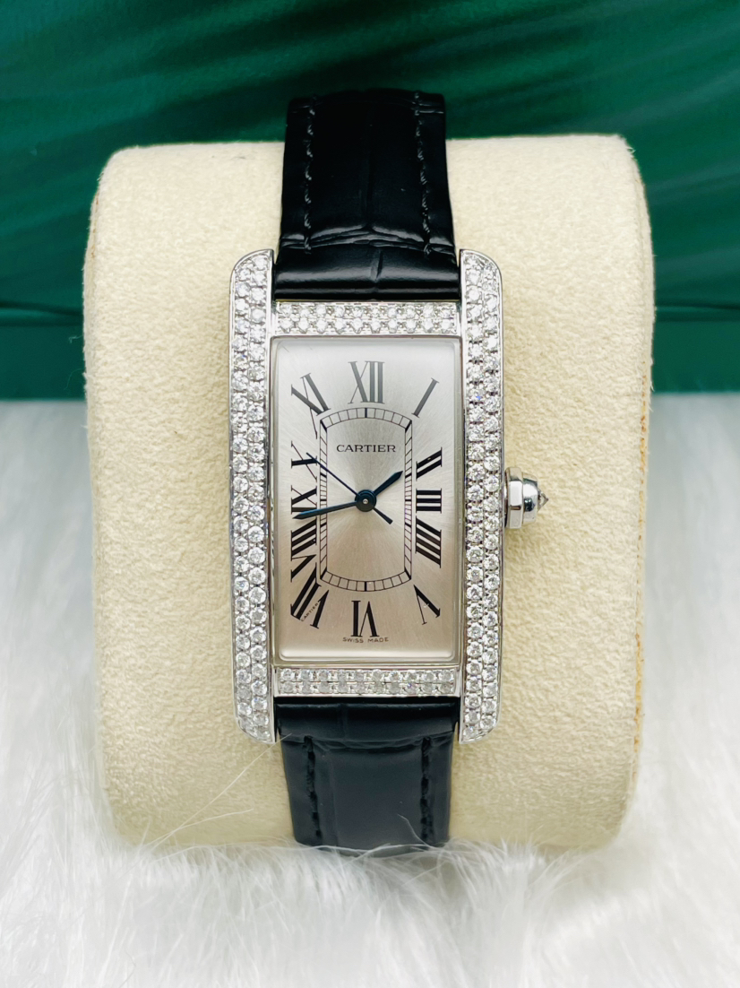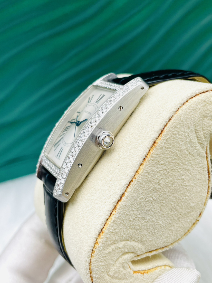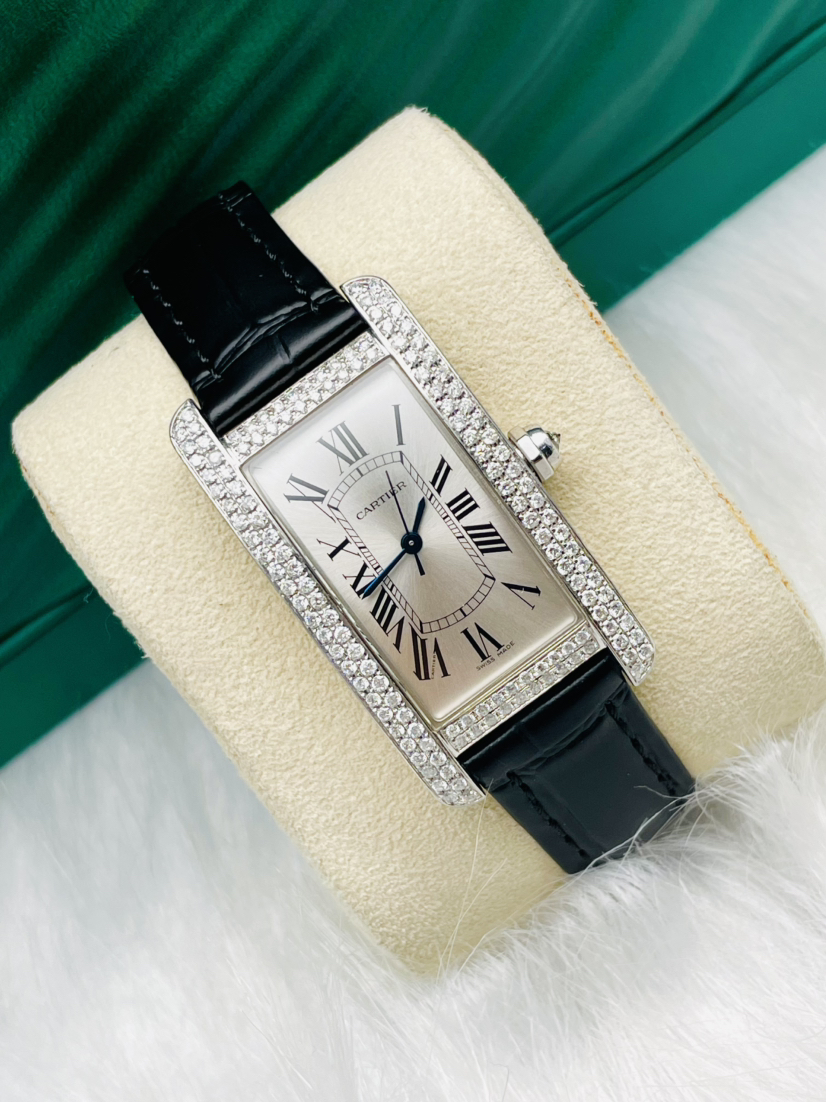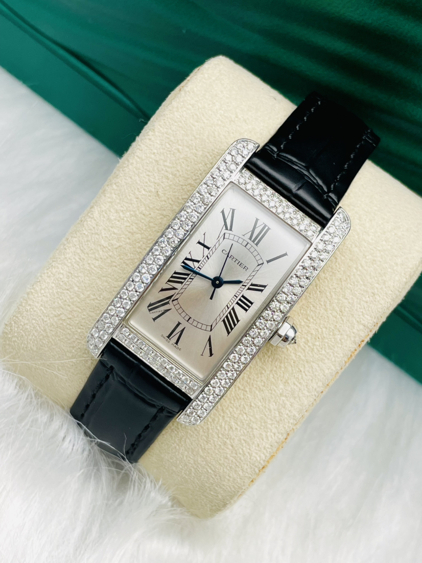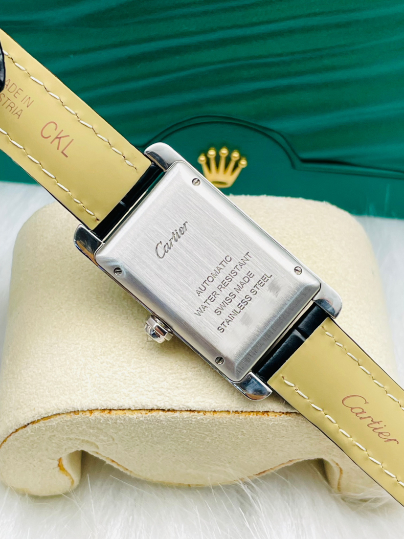 卡地亚坦克系列精钢后镶钻自动机械女士腕表
