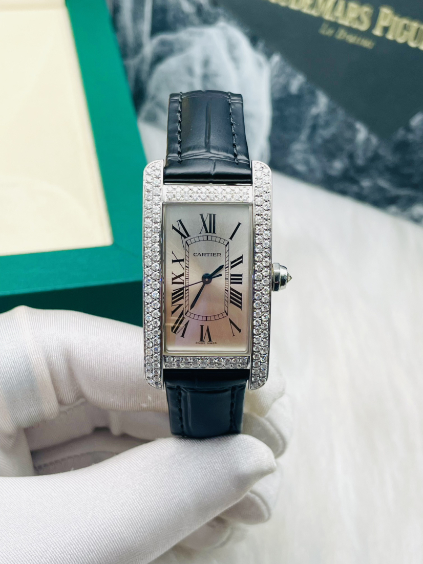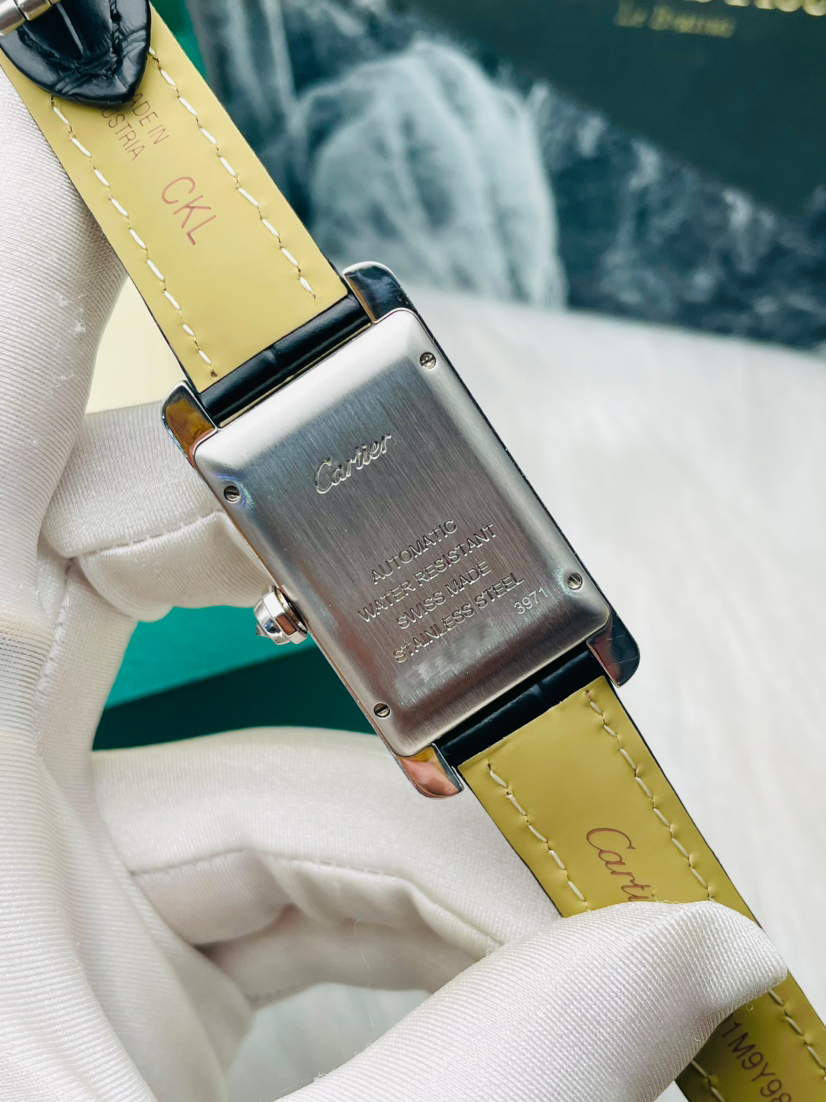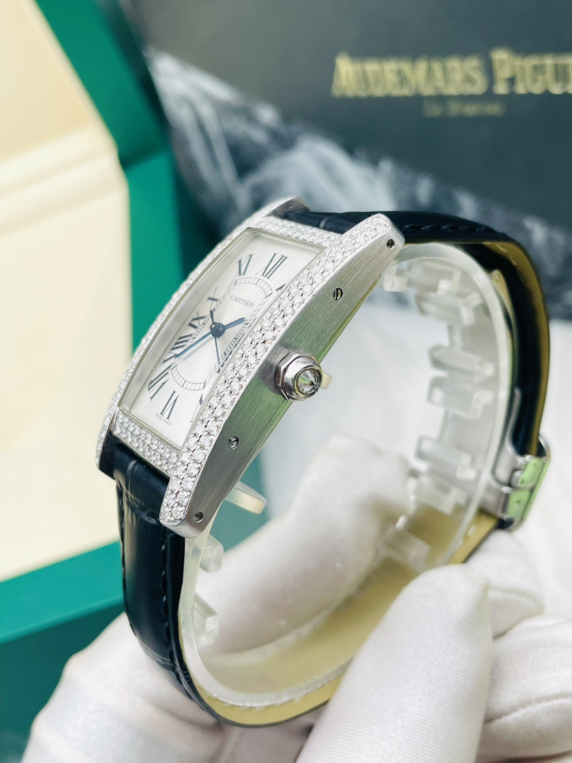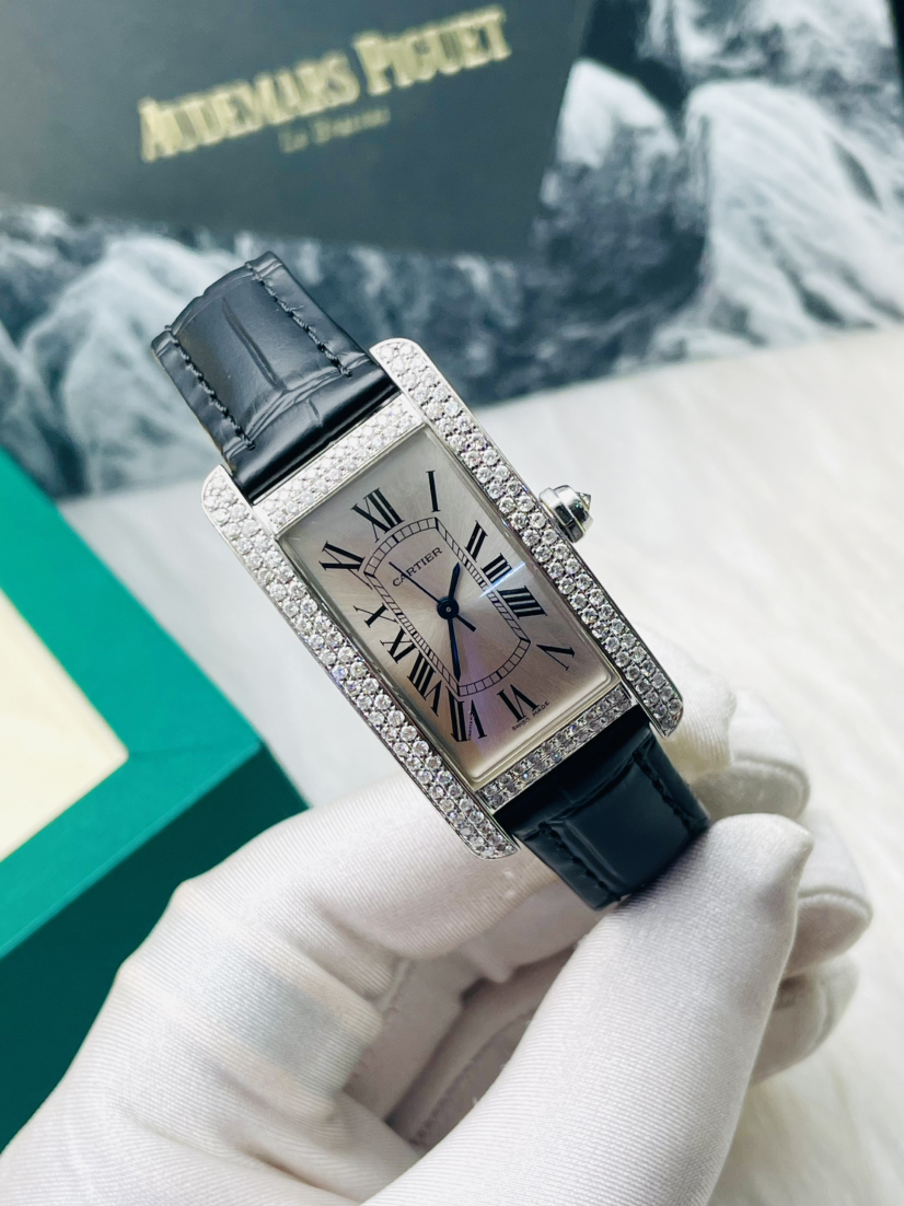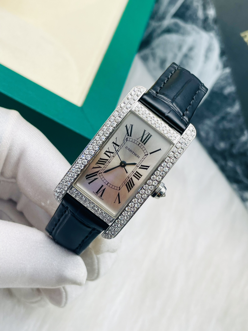 卡地亚坦克系列精钢后镶钻自动机械女士腕表